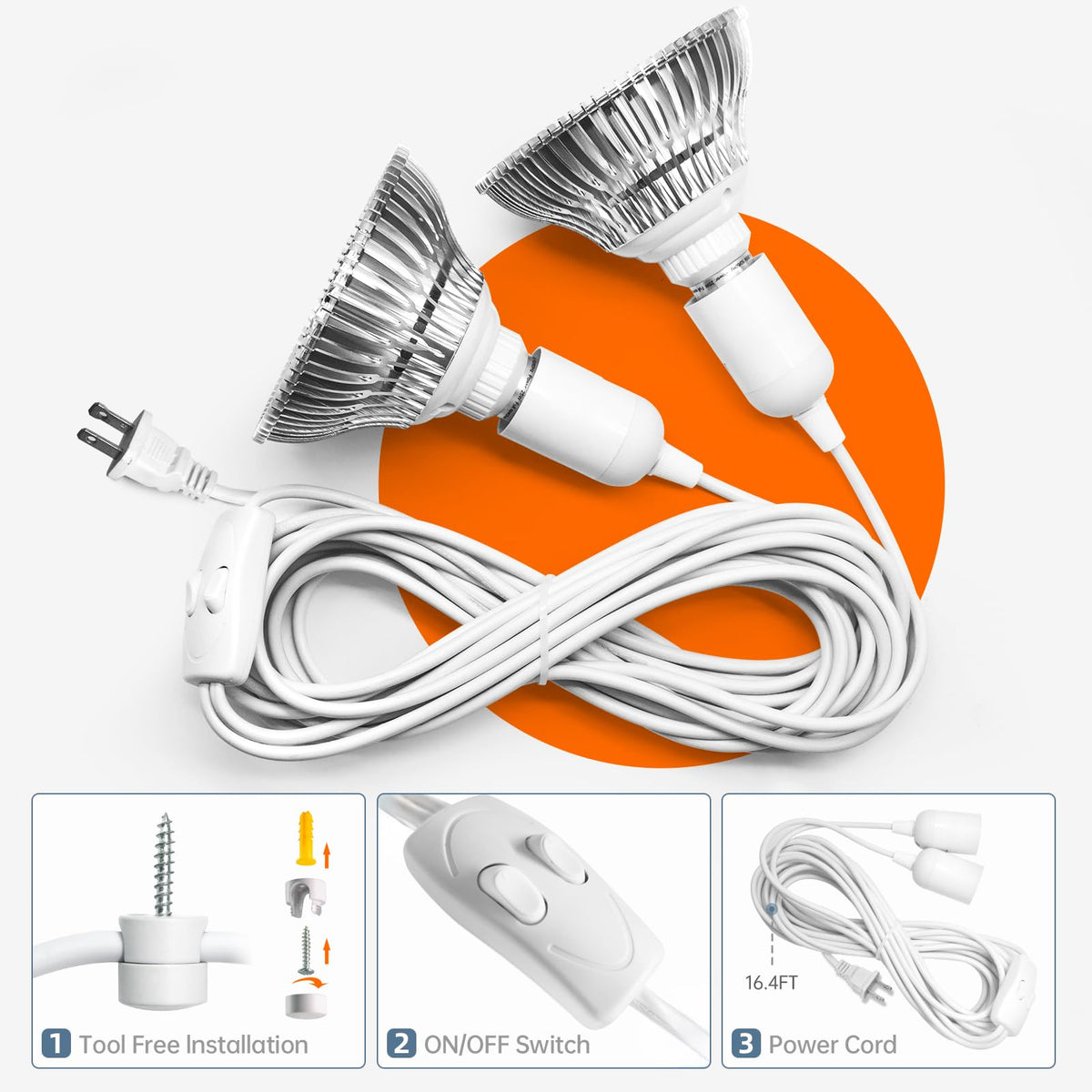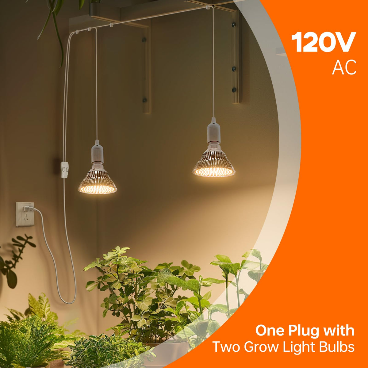 Hanging Grow Light, 50W (25W X 2), Double Head, Led Grow Lights for Indoor Plants Full Spectrum, Grow Lights for Seed Starting, Flowers and Fruit, Hanging Plant Light Bulbs with 16.4FT Power Cord