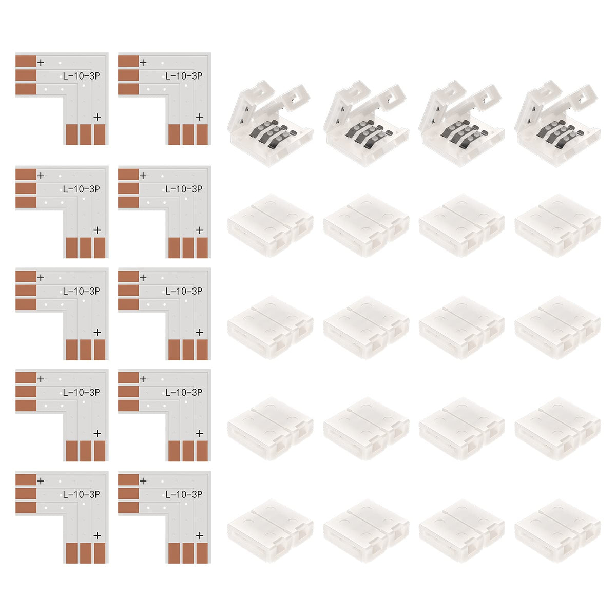 Btf-Lighting 10 Sets 3Pin 10Mm 0.39In Width Right Angle L Shape Solderless Corner Connector For Ws2811 Ws2812B Sk6812 Led Strip No Soldering Can'T Support 144Leds/M Or Altove Led Lights