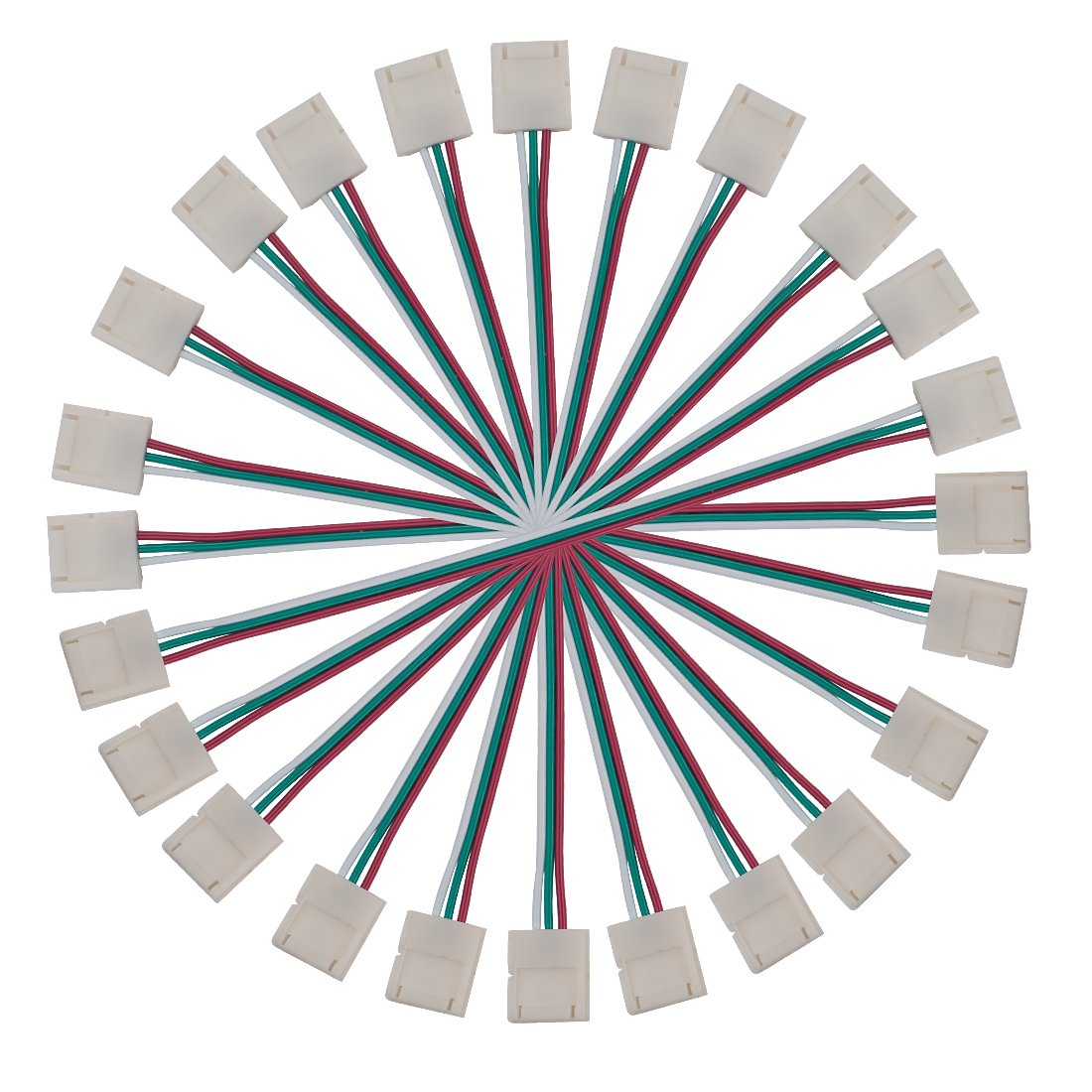 Q: What is the length of the cable included with the connectors?A: Each connector includes a 15cm (approximately 6 inches) long cable, providing ample length for connecting two ends of the LED strips.