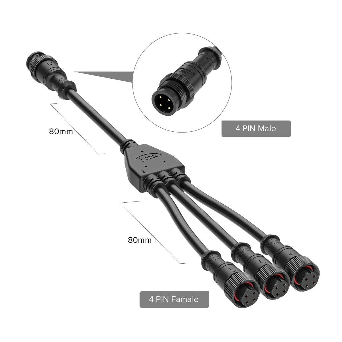 Btf-Lighting 4 Core 4 Pin Big Size Ip67 Y Shape 1 Male-Divided-3 Female Spillter Connctor Black Plastics 0.5Mm²/20Awg 22Mm Metal Metal Nut Support All Btf-Lighting 4 Pin Big Size Ip67 Connectors