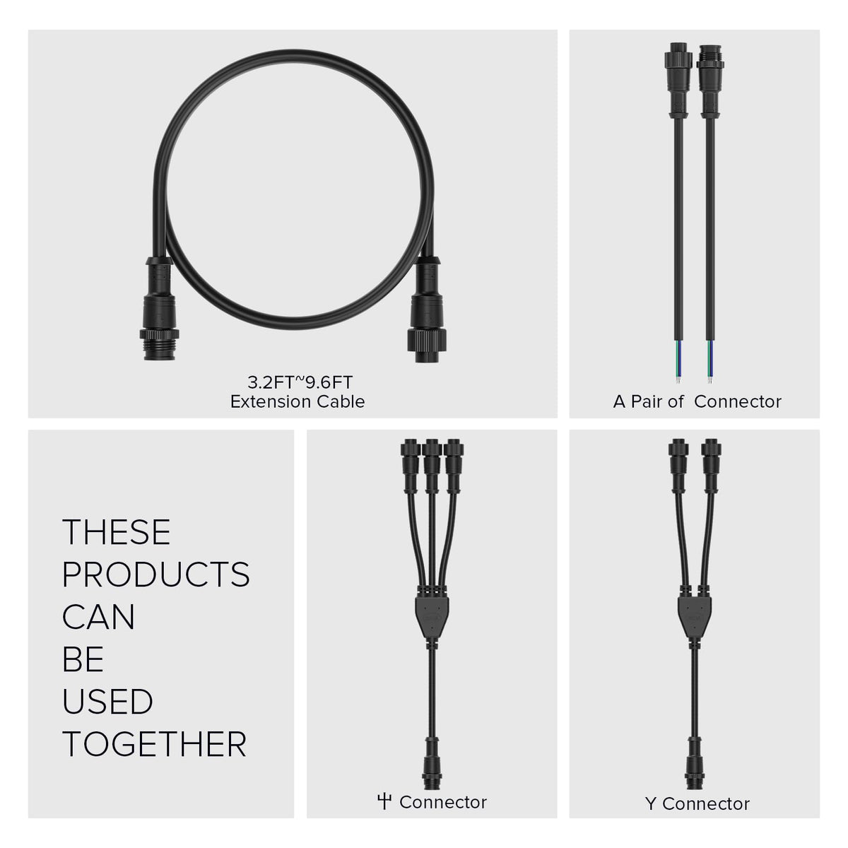 Q: Are there extension cables available that work with this connector?A: Yes, you can find compatible extension cables for the BTF-LIGHTING 4 pin connector. For example, search for ASIN B09K5MG1MX on Amazon to find 3.2ft, 6.4ft, and 9.6ft options.