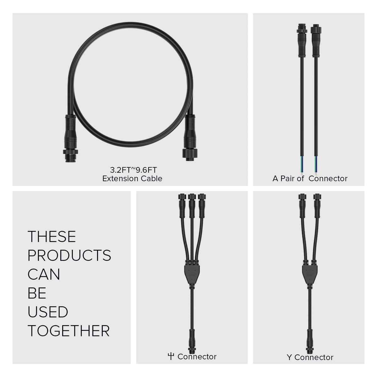 1 Male connector 3 female connectors. One pack 4 pin small size IP68 Y metal nut connector. Support small size 4 pin metal nut connector IP68. Matching connector B09K7594C9, please search this ASIN on amazon. Please note : make sure that the connector can fit your original connector. Connectors from different manufacturers cannot be used together. Please use BTF-LIGHTING connectors, extension cords, tee connectors, and splitters connector. | 4 PIN small size Y metal nut connector IP68. IP68 Design Wire Cable 0.5mm²/20AWG. Matching Extension cord connectors: Search this ASIN on amazon B09K5MBMZY, there are 3.2ft 6.4ft 9.6ft extension cable connectors. The length of the wire can be increased, thus making it more versatile. | High quality material: The pigtails are pre-tinned ,making soldering easy.No loose, reliable and lightweight. Material: Metal nut+Copper wire,eliable , no loose, lightweight and beautiful appearance, Easy disassembly, inspection and operation .Good sealing. | Wide range of uses:Motorcycles,Car,Truck,Boat,Indoor/Outdoor PWM or SPI LED Strip Lights LED String RGB 5050 WS2813 WS2815 WS2805 APA102C SK9822 WS2818 4 pin LED addressable strip Useful:This male/female connector is a very useful accessory when installing LED lights. | Connect reliablely and effective IP68. Can be customized.(Mass customization, T shape,+shape, wire length,wire gauge , 6 pin 7pin 8pin or ther parameters ) .Welcome consulting.