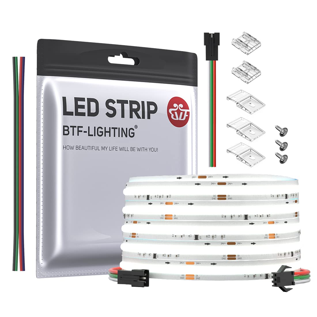Btf-Lighting Fcob Cob Led Strip Addressable Ws2811 Ic 6000K Cool White Flexible High Density Uniform Chasing White Light 16.4Ft Dc24V Cri 90+ 360Led/M For Indoor Decor(No Adapter Or Controller)
