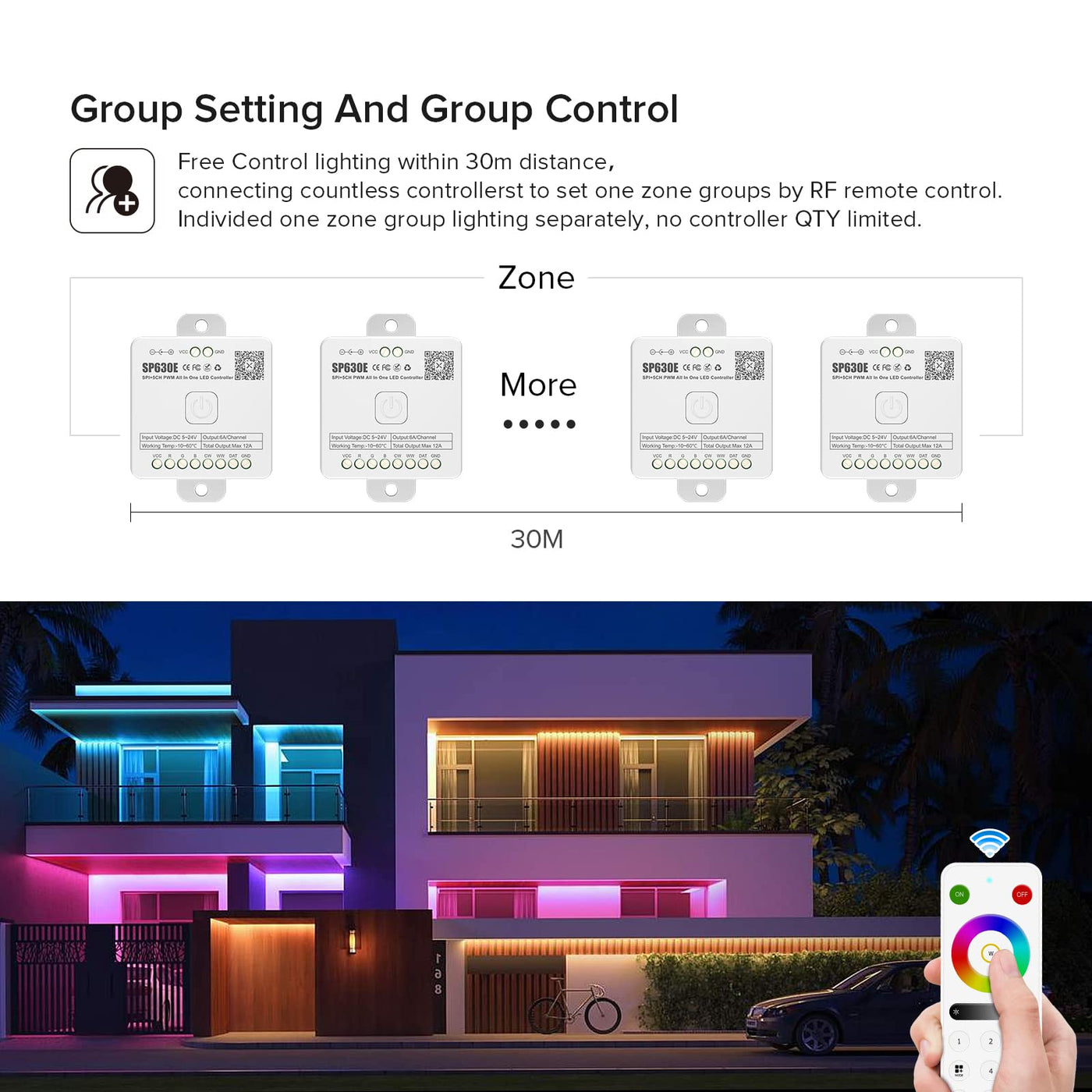 Q: Can I control multiple LED strips with one RB3 remote?A: Yes, the RB3 remote can control up to 4 zones, allowing you to manage multiple LED strips simultaneously. One remote can control multiple controllers, and each controller can be paired with up to 5 remotes.