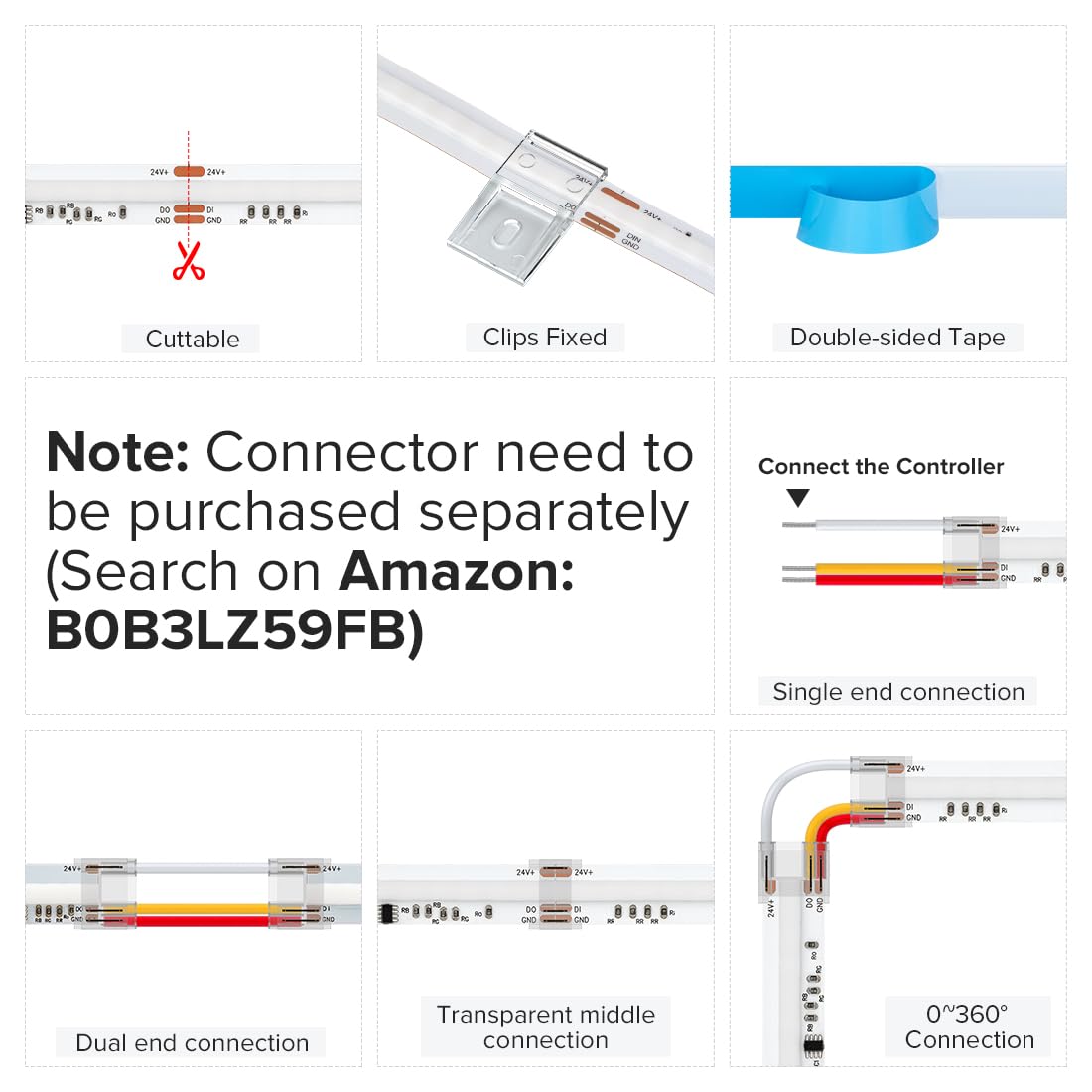 Includes essential accessories like 2X3PIN male connectors and fixed clips for easy setup (power supply and controller sold separately).
