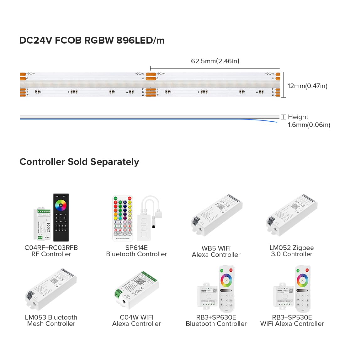 Q: What controllers are compatible with this RGBW LED strip?A: The FCOB LED strip requires a compatible controller to unlock its color-changing features. Controllers can be purchased separately and are essential for producing the multi-color lighting effects.
