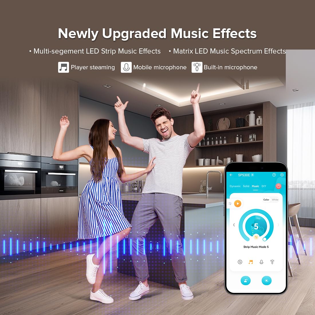 Q: What features does the SP530E Controller offer for music synchronization?A: The SP530E Controller includes an LED Matrix spectrum effect feature, allowing you to configure the size and alignment of the LED Matrix and set music spectrum parameters such as color, saturation, and direction for a unique music experience.