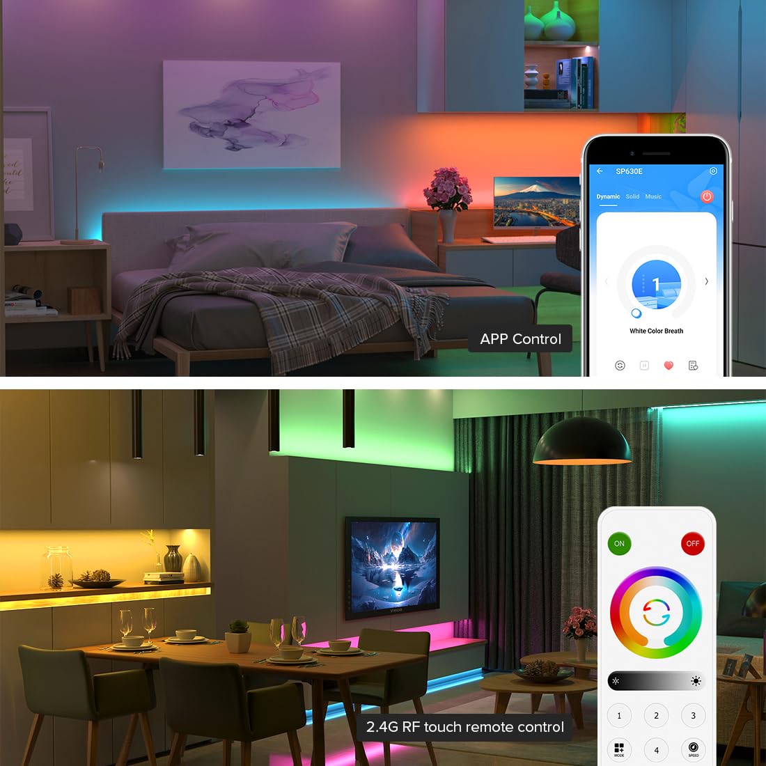 Q: How far can the RF remote control operate from the SP630E LED controller?A: The RF remote control for the SP630E has a maximum operational distance of up to 30 meters (98 feet) in an open space, allowing for convenient control of your LED strips from a distance.