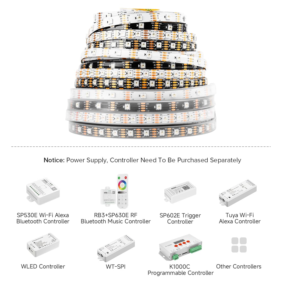 Compatible with SPI RGB Controllers: Works with various programmable and Bluetooth music controllers.