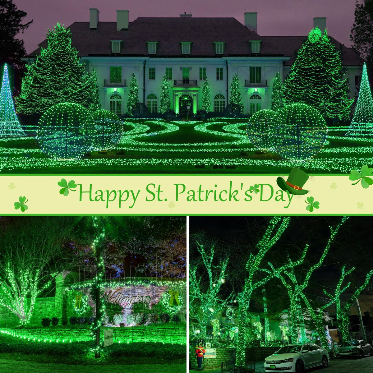 Btfarm 4 Pack St Patricks Day Fairy Lights, 320Led 132Ft Green Solar String Lights Outdoor Waterproof, 8 Modes Solar Twinkle Lights Irish Decorations For Tree Party Christmas Garden Yard Wedding