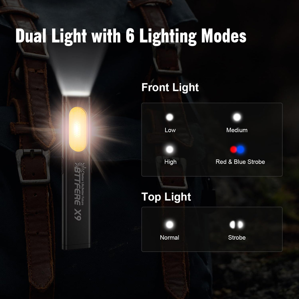 Bttfere 2 Pack Pocket Flashlight EDC Clip Light with Magnetic Base - 675 Lumen Rechargeable Slim Flat IPX4 Waterproof Dual Modes