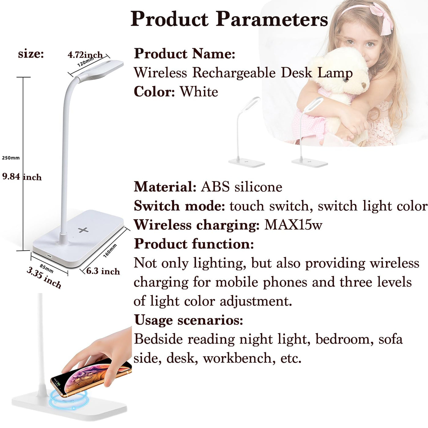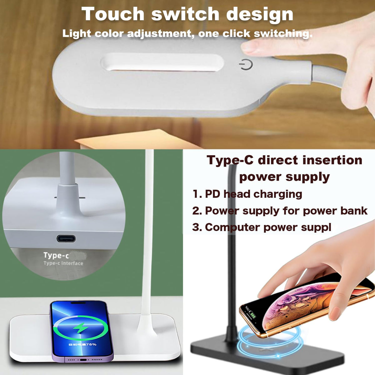 Buerallan 2Pcs Led Desk Lamps, Table Lamp, Night Stand Light For Home, 3 Lighting Modes, Wireless Fast Charging, Desk Light Touc