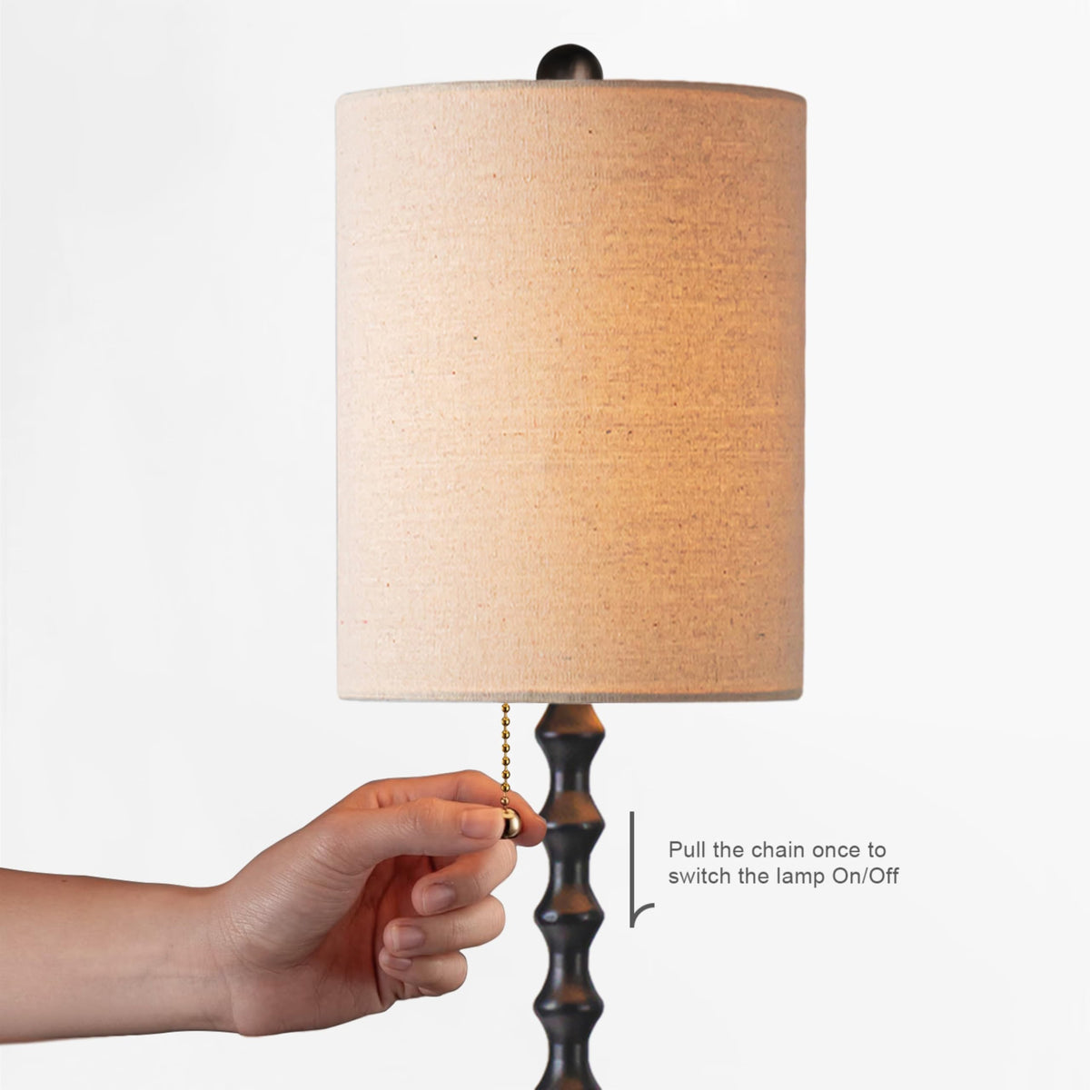 Q: What style or decor do these lamps complement?A: The buffet table lamps feature a simple country design that adds charm to various spaces, including entryways, hallways, console tables, buffets, and dining rooms. Their elegant black finish and linen shade make them versatile for different home decor styles.