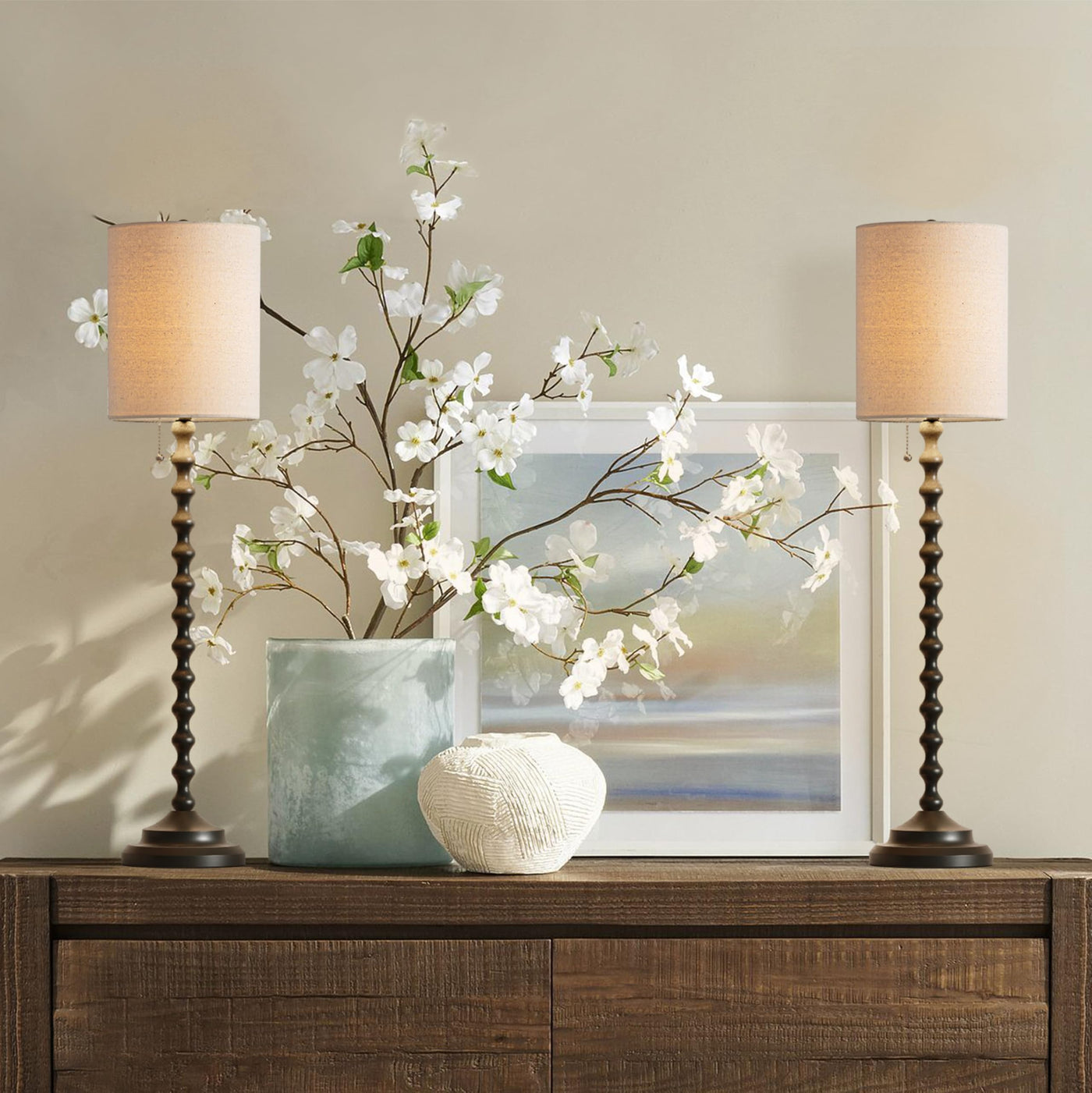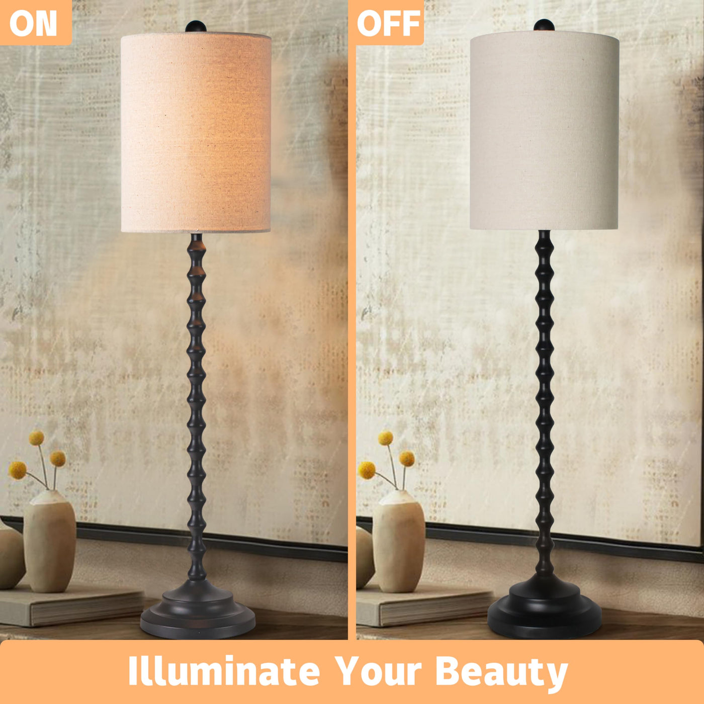 Buffet Table Lamps Set Of 2 With Linen Shade, Black Elegant Tall Table Lamps, 29.5'' Tall Bedroom Lamps For Nightstands, Bedside Lamps For Bedroom Living Room, Buffet Lamps For Dining Room, Entry