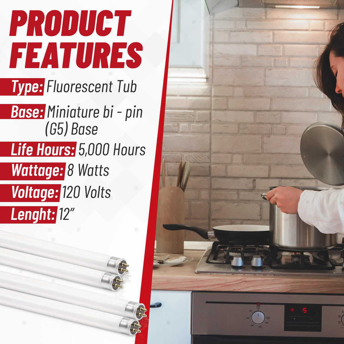 BULBMASTER F8T5/WW 8W Warm White 3000K Fluorescent Tube Light Bulb 12” Linear T5, 380 Lumens, 120V