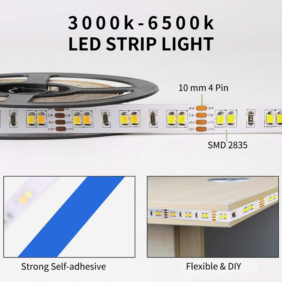 Transform your space with the BUNACET Tunable White LED Strip Lights, designed to enhance any environment with customizable lighting solutions. This versatile 32-meter (105 feet) LED strip, featuring 3840 high-quality 2835 SMD LEDs, allows you to create the perfect ambiance for any occasion, from cozy gatherings to productive workspaces.