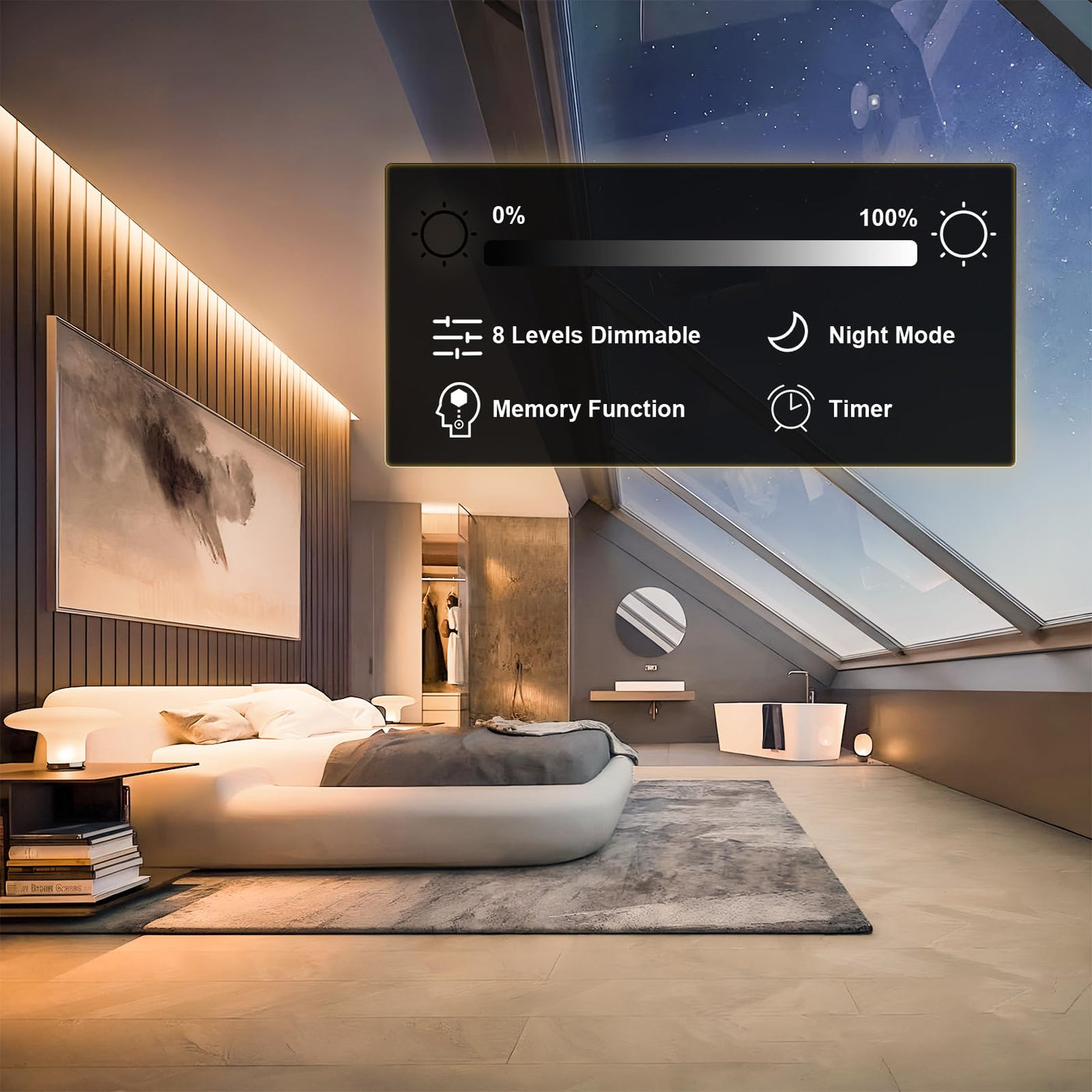 Bunacet 40Ft Cob Led Strip Lights, Bluetooth Smart App Tunable White Led Tape Lights Daylight Warm White Led Light Strip With Remote Dimmable Cob Led Lights For Bedroom Kitchen Room Home Lighting Super Bright And Dimmablebunacet Led Lights Are Extremely Bright To Light Up Your Room. The Color Temperature Is 3000K Warm White, You Can Change The Brightness Of Strip Lights From 0% To 100% With The Rf Remote. Uniform Light And Cuttablecob Led Strip Light Uses Newest Form Of Led Technology, The Leds Are Small And Densely Spaced, Provide A Uniform Glow Without Gaps Or Dark Spots In The Light Strip. The Led Strip Can Be Cut To Fit The Space.Strong Adhesive And Easy To Installthe Double Sided Tape Of White Led Lights Sticks Very Well So The Cob Led Strip Is Super Easy To Install. Just Peel Off The Paper And Stick It On, Make Sure You Clean The Area Of Dirt First. Widely Applicationthis Strip Lighting Is Great To Use Anywhere In Your Home, Adds Pretty Accent Lighting Transforming Your Home Into A Beautiful Place. Can Use As Under Cabinet Lights, Tv Light, Closet Light, Bed Led Lights, Mirror Lights And More.What You Get20Ft Cob Led Strip, 24V Power Adapter, Controller, Rf Remote, Welcome Guide, Our Worry-Free 12-Month Warranty, And Friendly Customer Service.