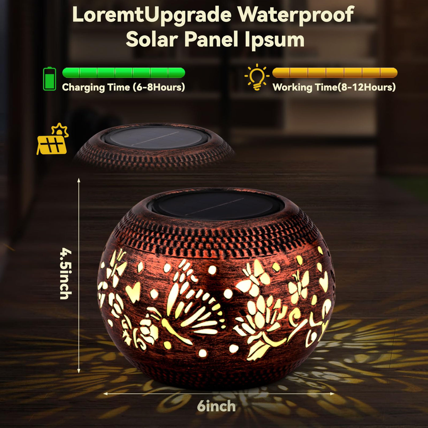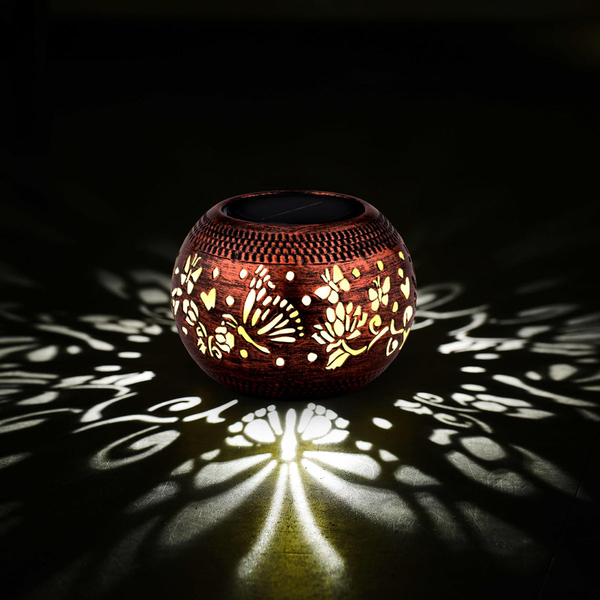 Butterfly Solar Retro Metal Lantern Outdoor Patio Decor