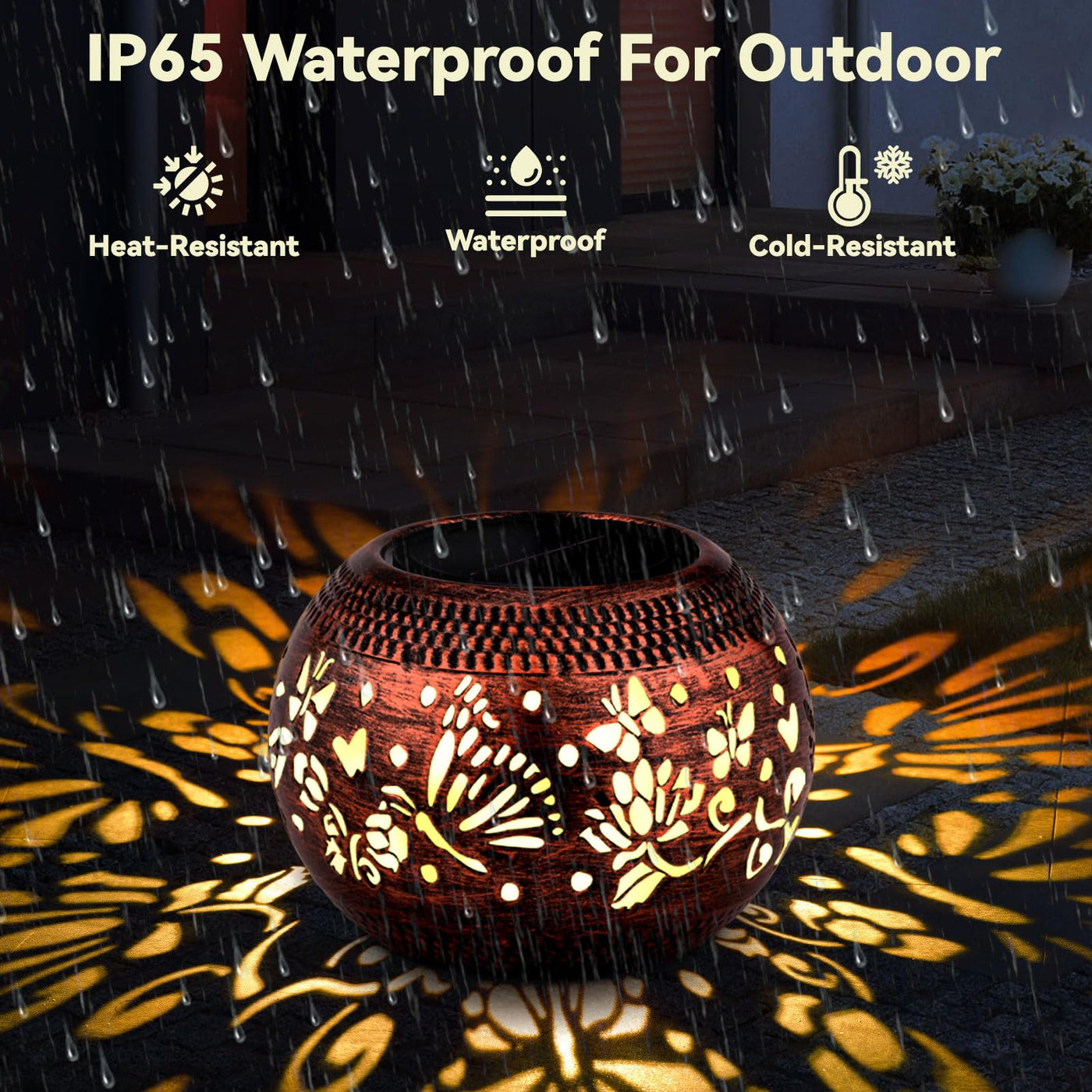 Q: Are these solar lanterns waterproof and suitable for all weather conditions?A: Yes, the Butterfly Solar Lanterns are engineered with IP65 waterproofing and are made from a rust-proof metal alloy, ensuring they can withstand various weather conditions, including rain, snow, and extreme temperatures.