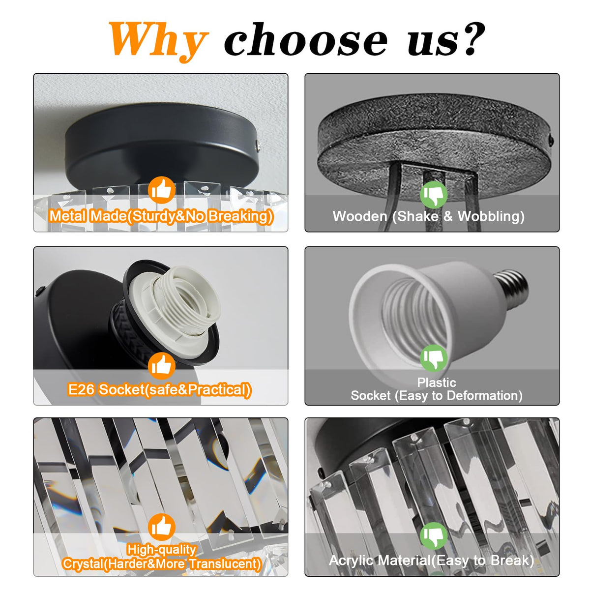 Why You Should Choose Buxvrcs Hallway Crystal Ceiling Light Fixture? Buxvrcs Is A Lighting Brand That Focuses On Fashion And Personalization, Helping More Families Improve Their Homes, Creating Their Own Warm And Comfortable Homes, And Providing More Families With High-Quality Lighting Products. This Semi Flush Mount Ceiling Light Fixture Is Produced By Premium Material, Very Easy To Install, All Parts Are Strictly Inspected Before Package, So You Will Never Face The Issue That Missing Parts Like Others. With The Elegant Modern Design, Perfect For Any Room Makeover And It Will Let You Feel How Awesome It Is.