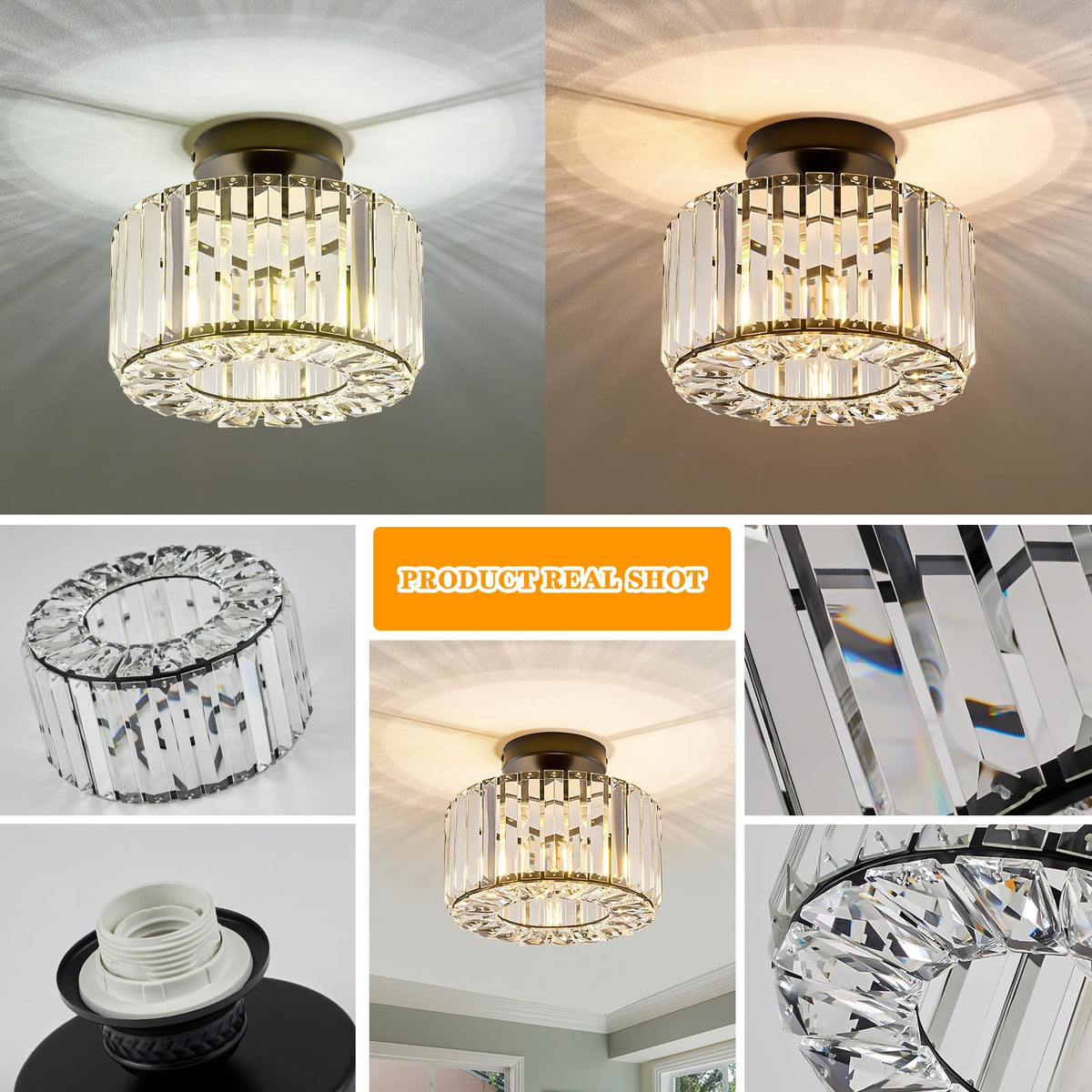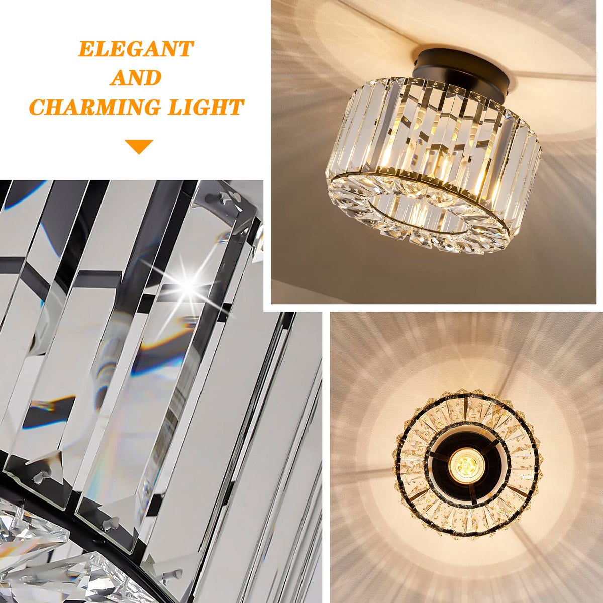 Buxvrcs Crystal Ceiling Light Fixture - Semi Flush Mount Ceiling Light Modern Chandelier Hallway Light Fixtures Ceiling Flush Mo