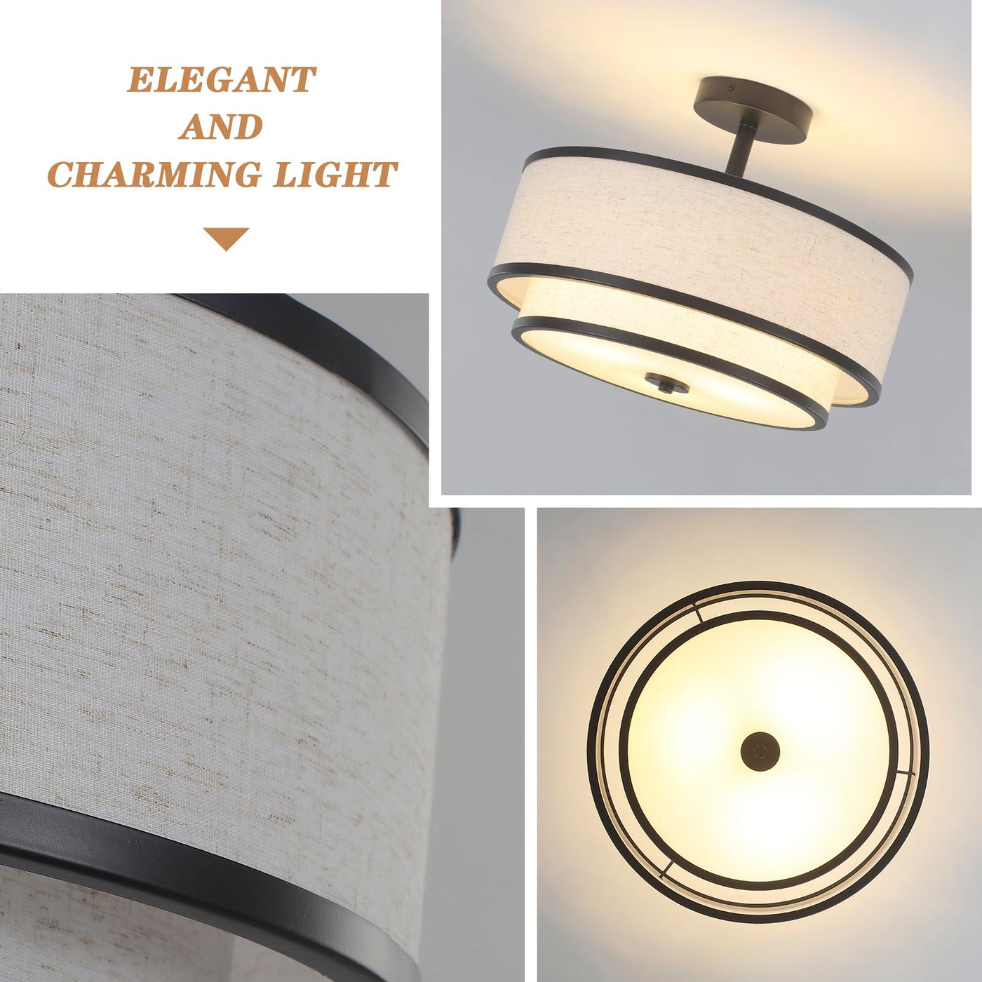 This light fixture features a unique double-layer design that combines metal and fabric materials, enhancing its visual appeal. The soft lighting not only protects your eyes but also creates a warm environment, making it an excellent choice for living rooms, kitchens, dining areas, and hallways. With its robust construction, this ceiling light is both exquisite and durable, suitable for long-term use.
