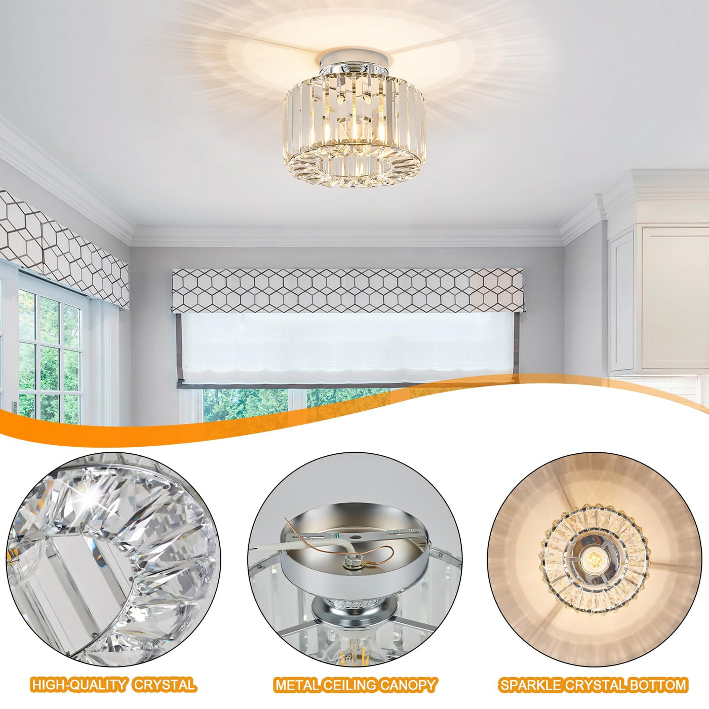 Why You Should Choose Buxvrcs Hallway Crystal Ceiling Light Fixture? Buxvrcs Is A Lighting Brand That Focuses On Fashion And Personalization, Helping More Families Improve Their Homes, Creating Their Own Warm And Comfortable Homes, And Providing More Families With High-Quality Lighting Products. This Semi Flush Mount Ceiling Light Fixture Is Produced By Premium Material, Very Easy To Install, All Parts Are Strictly Inspected Before Package, So You Will Never Face The Issue That Missing Parts Like Others. With The Elegant Modern Design, Perfect For Any Room Makeover And It Will Let You Feel How Awesome It Is.