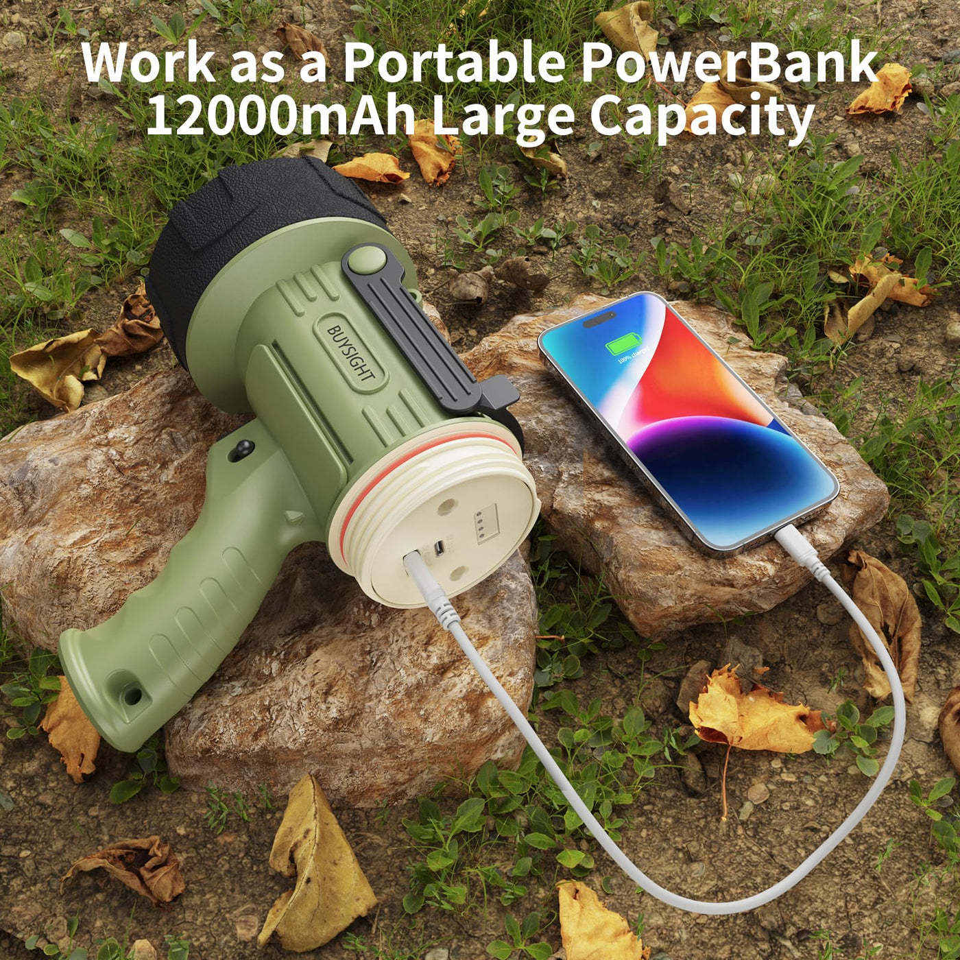 Buysight Rechargeable Spotlight Flashlight, 1000,000 Lumens Hand Held Spot Lights Waterproof Led Flashlight Hunting Lamp With Red Filter (Matcha Green)