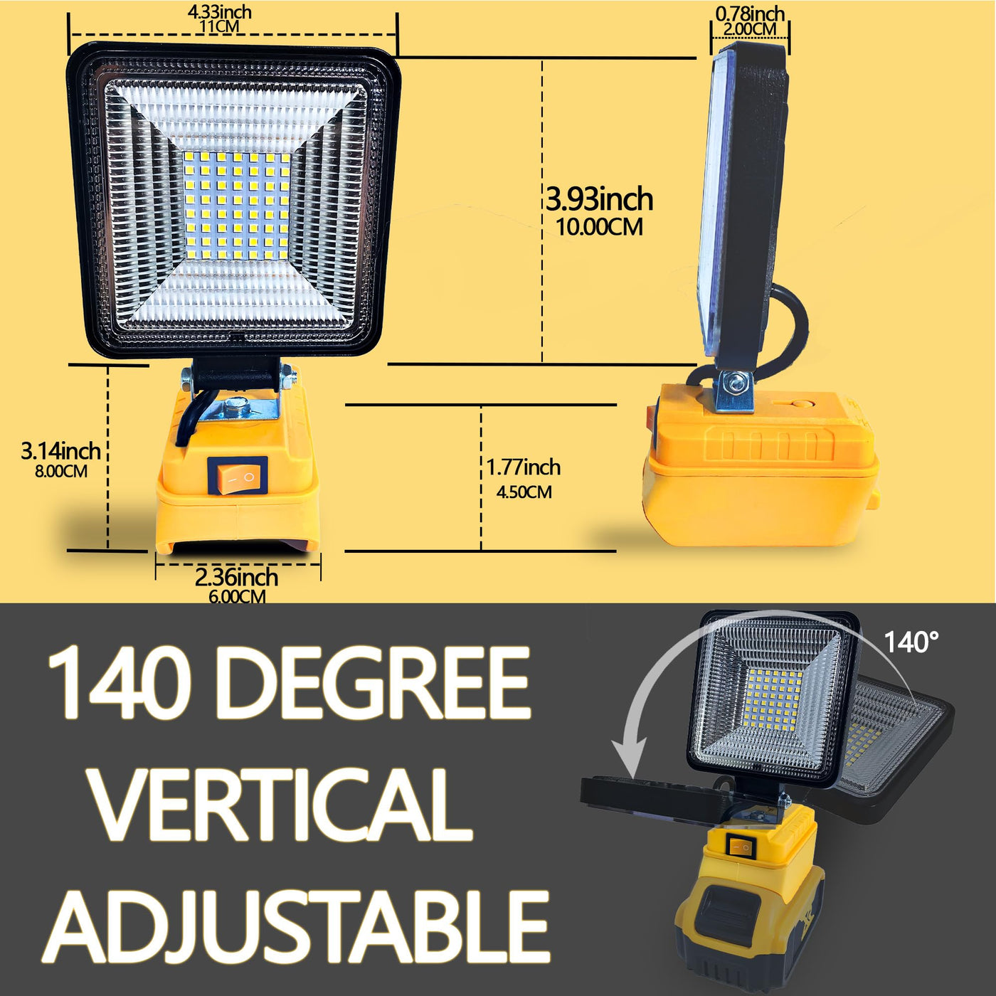 About Us The Research And Development, Production And Application Of Byczone Continue To Focus On Tools Products, And Has Been Pursuing The Highest Principle Of Product Quality And Customer Experience. So Far, The Created Products Serve More Than 80 Countries And Regions, And Are Committed To The Continuous Efforts Of Mankind'S Happy Life. Finer Details: Material:Aluminum Pve Connection Port: For Dewalt Batterise Led Work Light For 20V Dewalt Battery Flood Light For Outdoor Ip66 Waterproof 54 Lamp Beads, 1900Lumens, Maximum Lighting Range 100 Meters