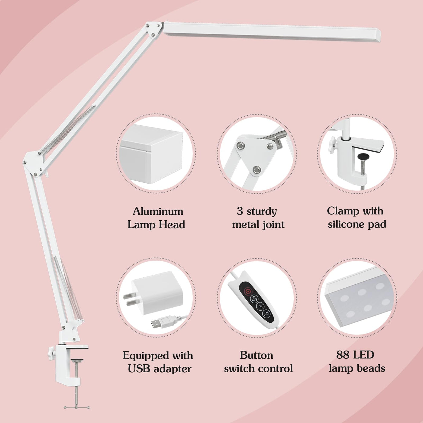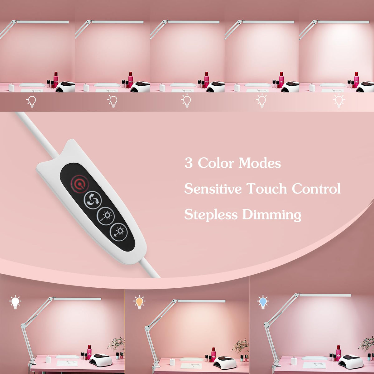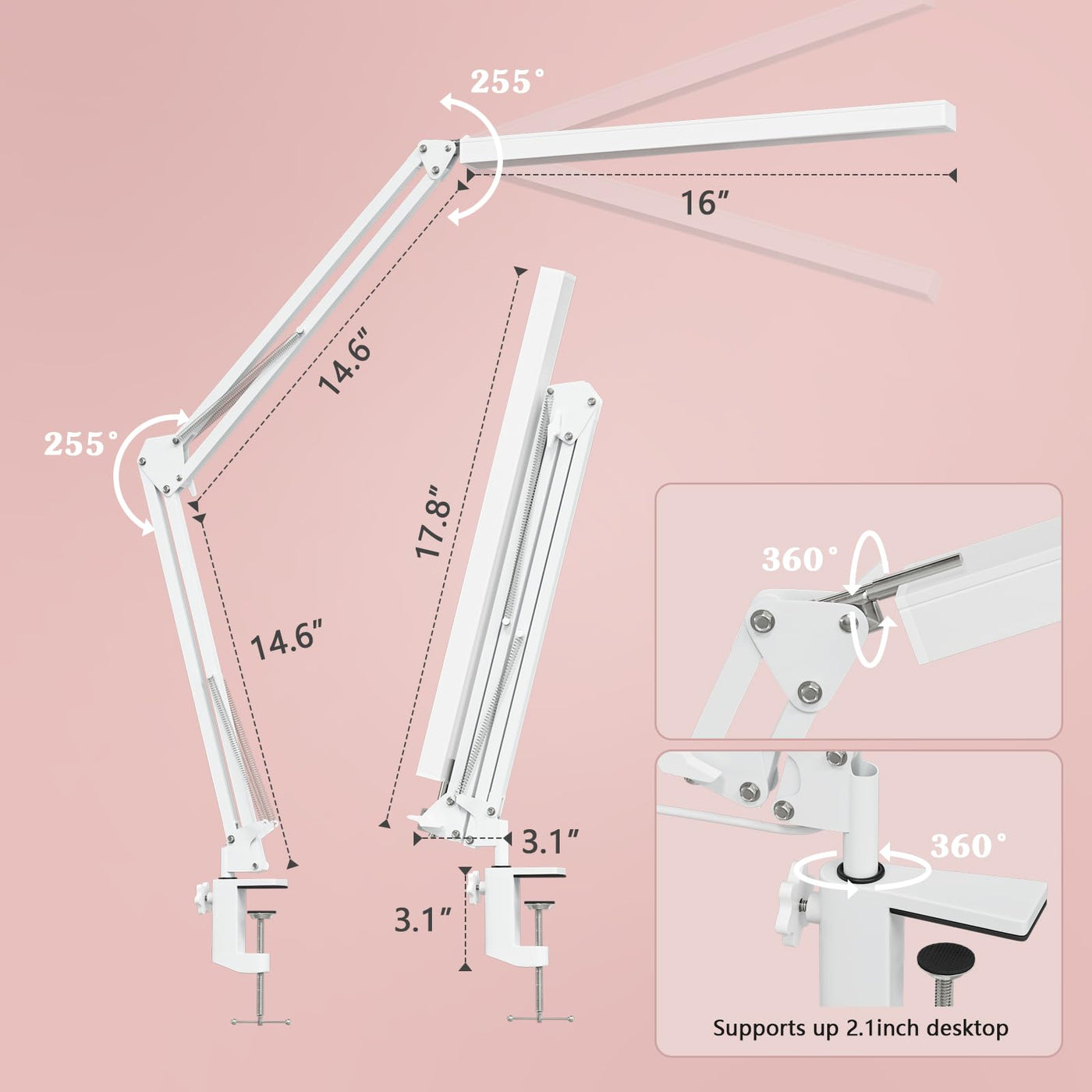 Bzbrlz Led Desk Lamp, Manicure Table Lamp, 16'' Lamp Head, Dimmable Eye-Caring Drafting Light With 3 Color Modes, 10 Brightness