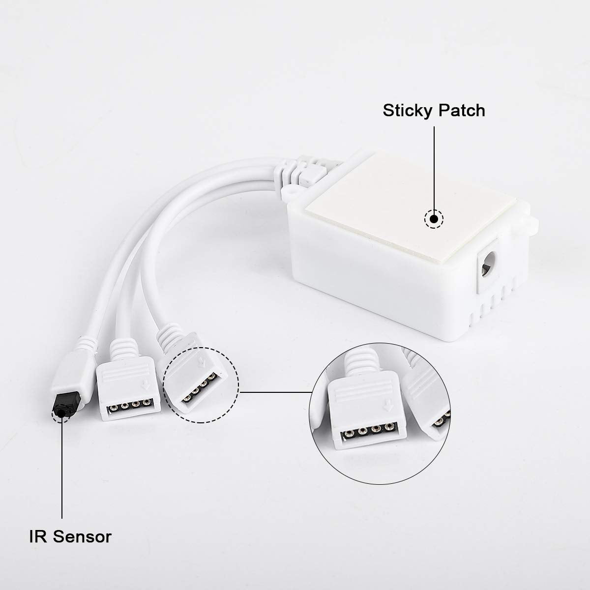 Q: How does the IR remote control work with the RGB LED Controller?A: The included IR remote control allows you to easily adjust the colors, brightness, and lighting modes of the LED strip lights from a distance, providing convenience and customization.