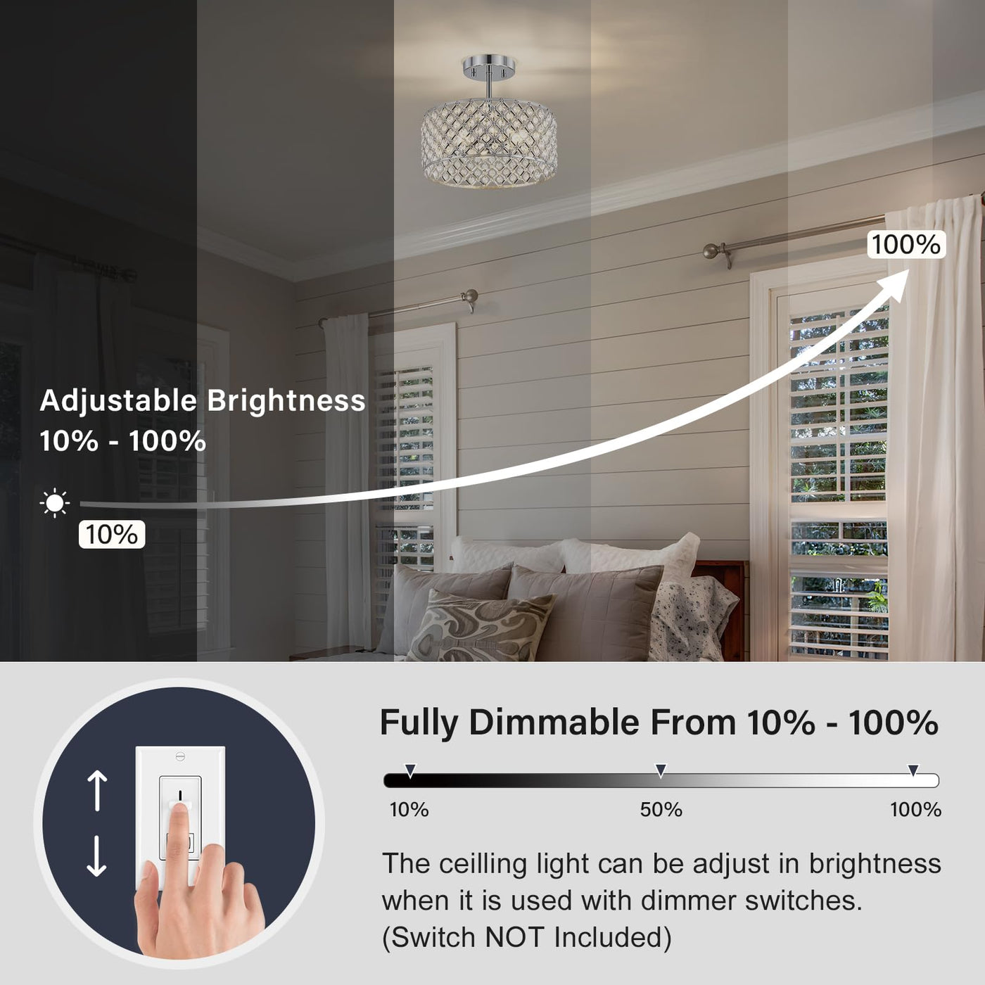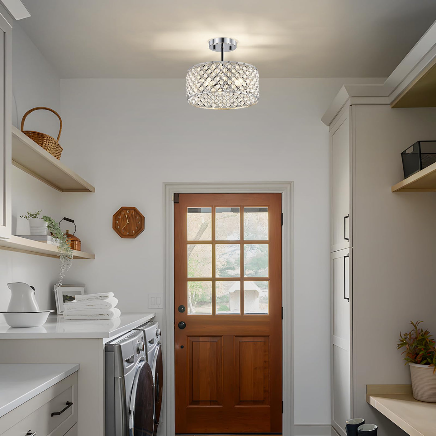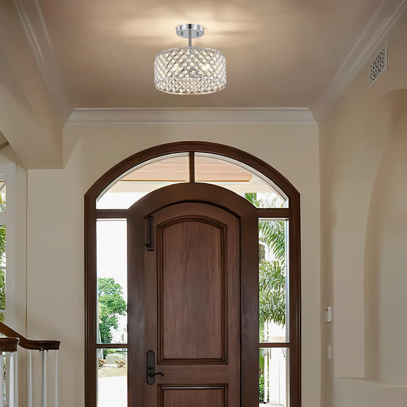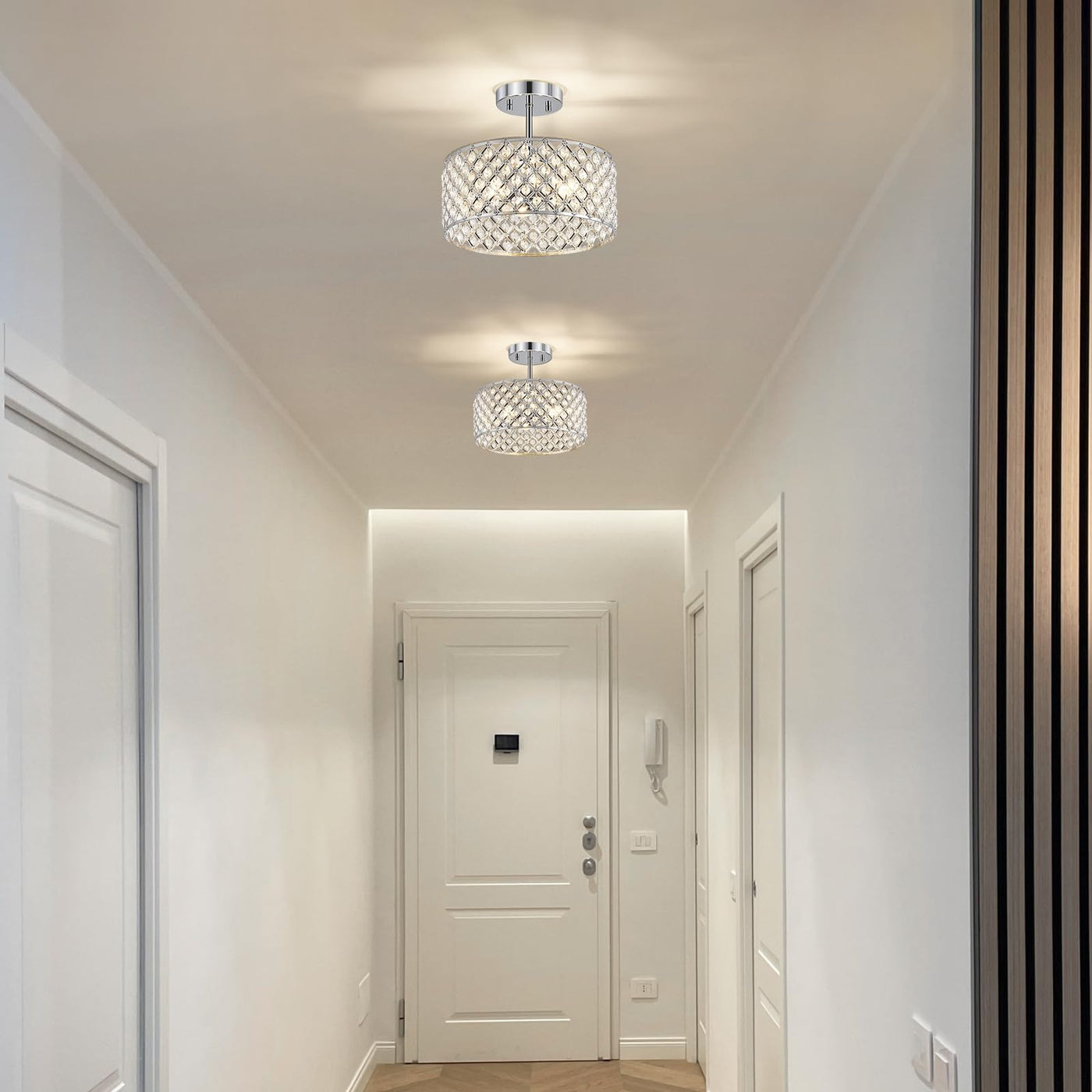 Chrome Crystal Ceiling Light Fixture 12 Inch Small Semi Flush Mount Ceiling Light Fixture Small Round Hallway Light Fixtures For Entryway Laundry Room Kitchen Bedroom