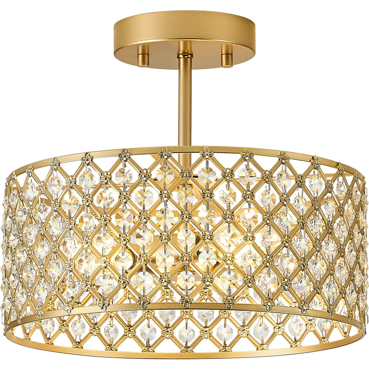 Bzvesr Gold Crystal Ceiling Light Fixture,Modern Semi Flush Mount Ceiling Lighting Fixture,Round Small Chandelier For Dining Roo