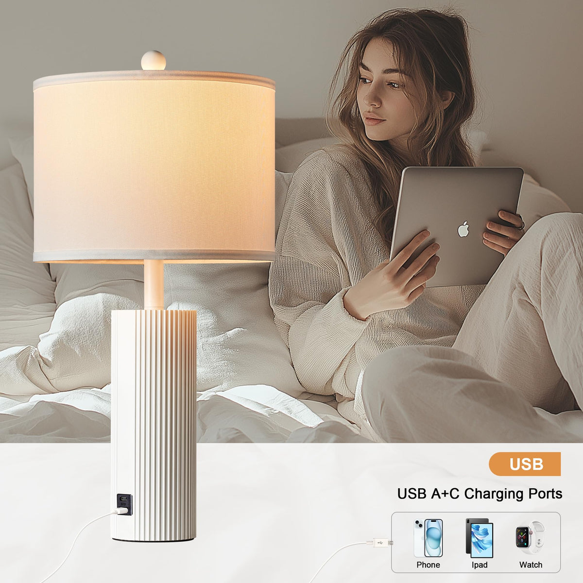 Bzzmmb 24.5'' White Table Lamps Set Of 2, Modern Lamps For Living Room End Tables With Usb C+A Ports, Metal Touch Light Fixture