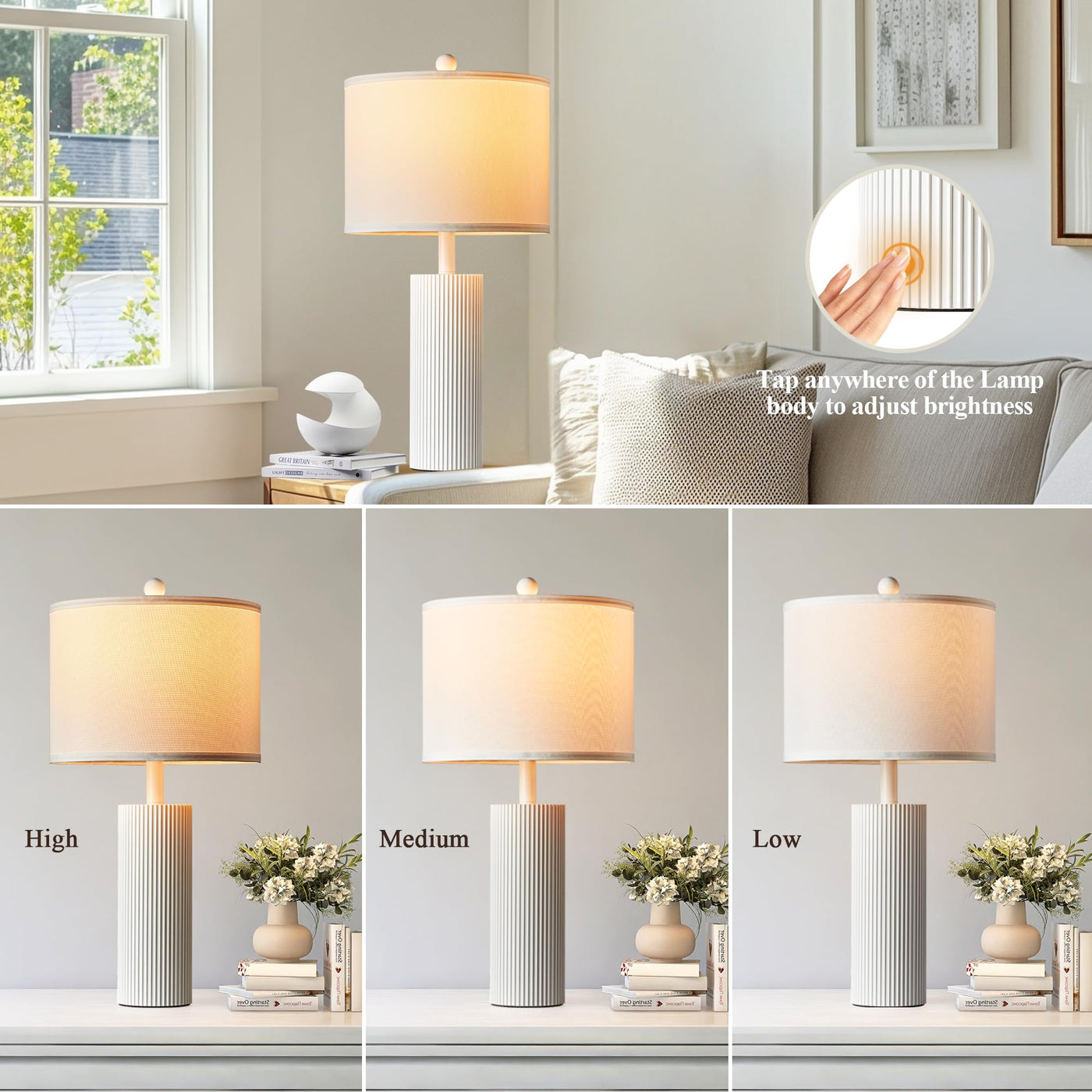 Q: How do I control the brightness of the lamps?A: These table lamps feature a 3-way dimmable touch control system, allowing you to easily adjust the brightness to Low, Medium, or High by simply touching the lamp body.