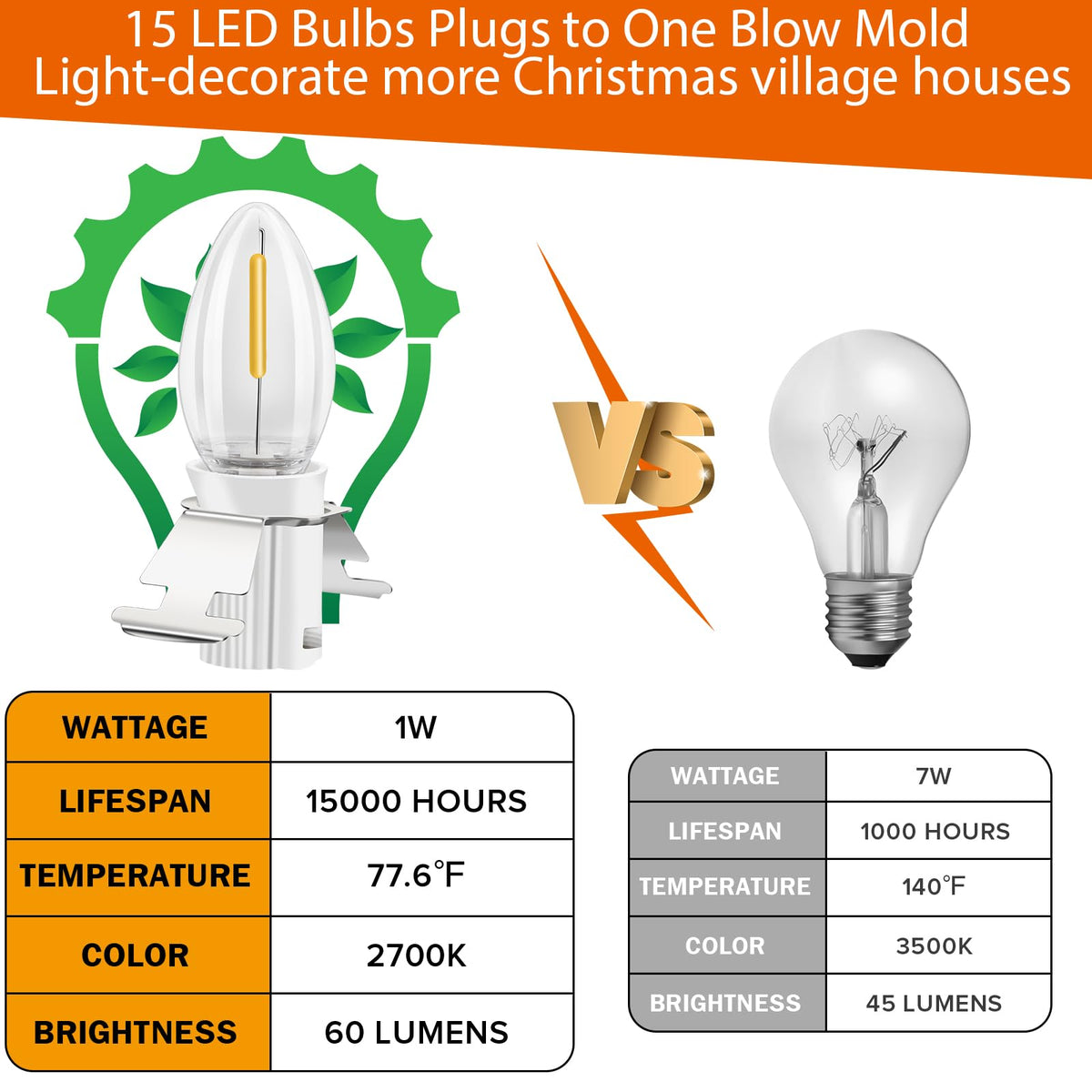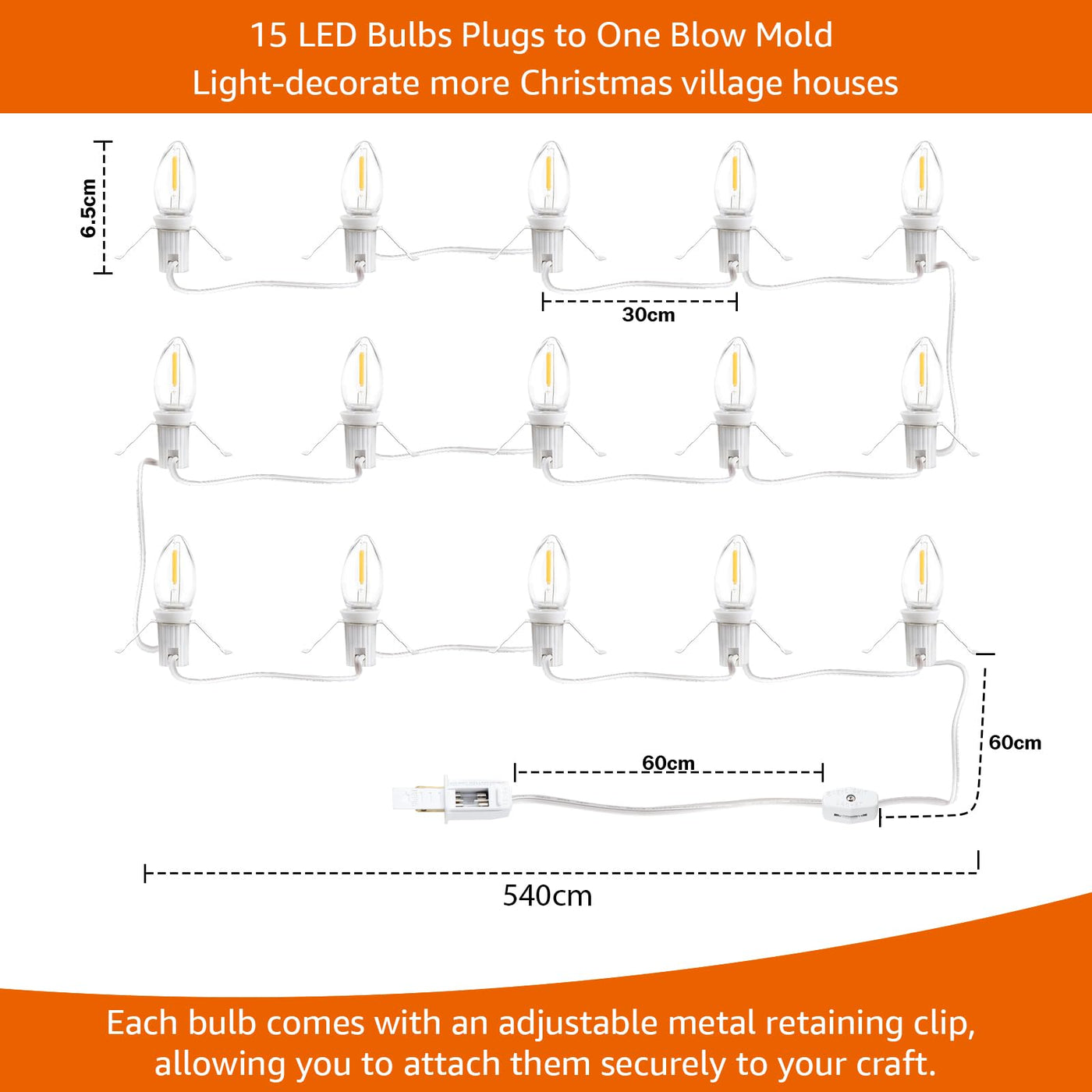 C7 Accessory Cord With 15 Led Light Bulbs And Outlet Christmas Village Light 17.7 Ft With Spare Fuse Warm White Lamp, For Xmas Village Pumpkin Crafts Holiday Decor