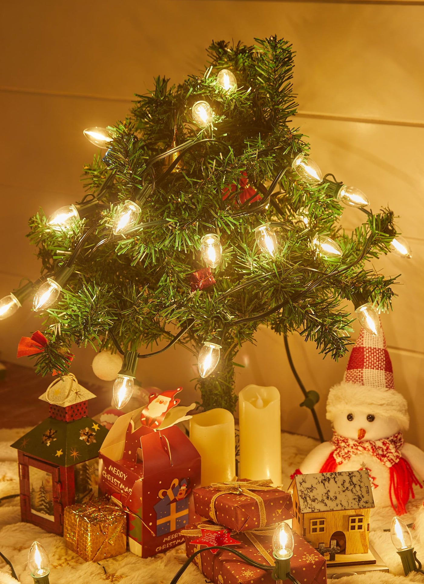 C7 Clear Led Christmas String Lights Outdoor, 100Ft Connectable Christmas Lights With 104 0.6W Bulbs(4 Spare), Vintage Hanging L
