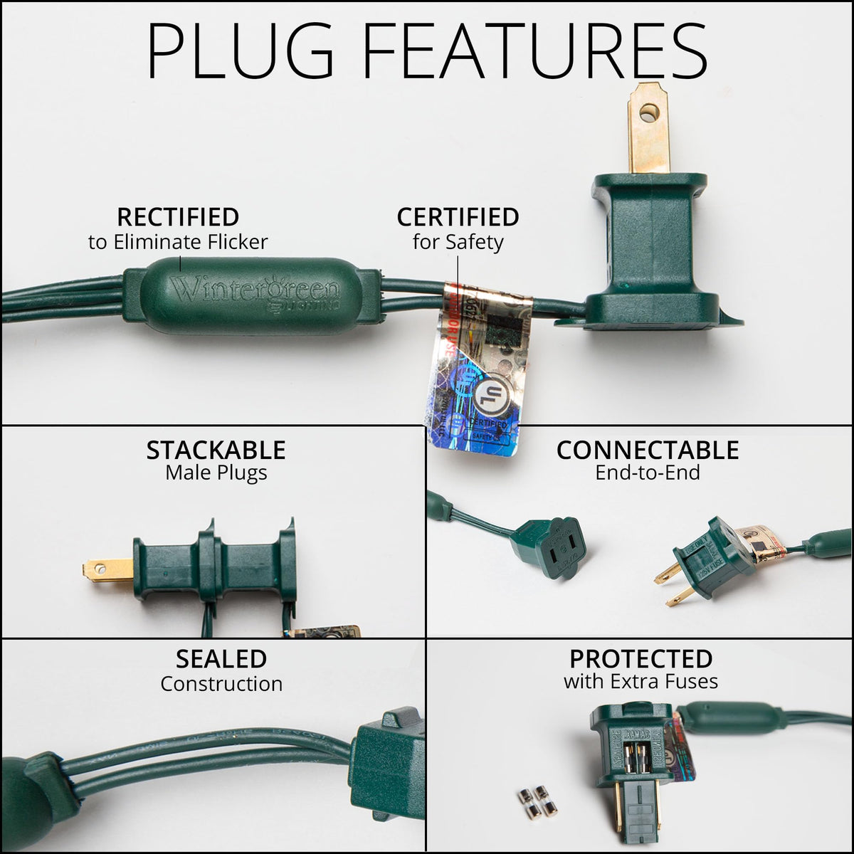 Q: How many sets of C7 lights can I connect together?A: You can safely connect up to 90 sets of C7 LED lights end to end on a single plug for a total coverage of over 1500 feet. Each set operates at 2.4 watts (0.02 amps), allowing you to maximize your holiday lighting display.