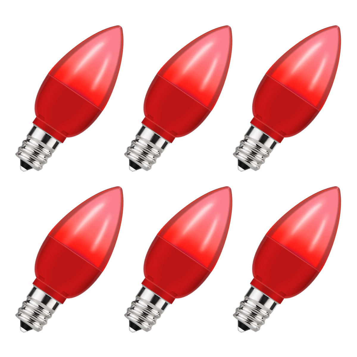 Specifications: Condition: Brand New Package include: 6 pieces of E12 LED Bulbs Color: Red Material: Plastic Base: E12 Base Wattage: 1 Watt (10 Watt Equivalent) Luminous Intensity: 100LM Input Voltage: 110V-130V Beam Angle: 270 degree Life Span: 20,000 hours Features: Energy saving: Save labor and electricity cost Red color: So cool this color that can create an ins-style and interesting atmosphere. Durable: Plastic construction and fade-resistant coating, extremely long life. Ambiance maker: Emit a pure charming red light for mood up and specialty application lighting. Application: Home Lighting: suitable for porch, patio, bedroom, kitchen, living room and dining room, wall lamps and table lamps. Commercial Use: Hotel, cafe, restaurant, commercial buildings, supermarket.