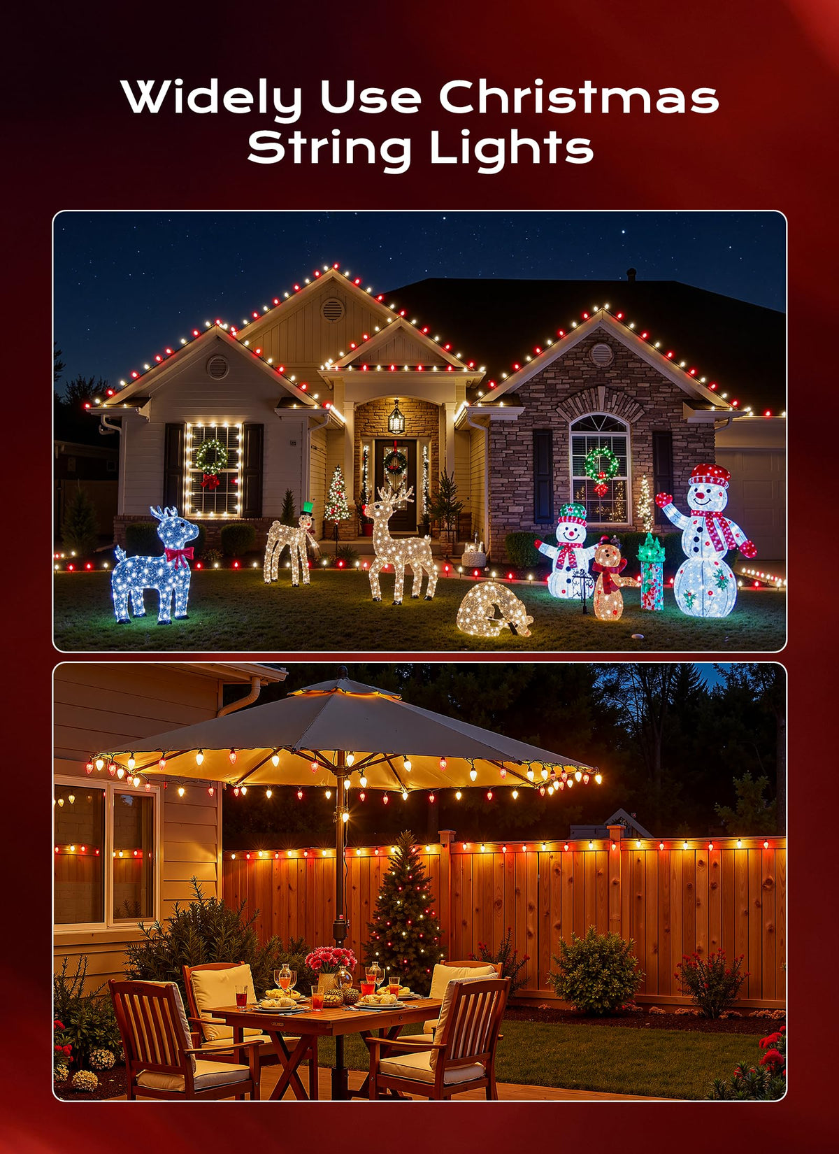 C9 Christmas Lights Outdoor 66 Ft 100 Led Connectable C9 String Lights With 8 Modes And Timer Xmas Tree Patio Roofline Garden Yard Holiday Party Indoor Outdoor Decoration Red And Warm White