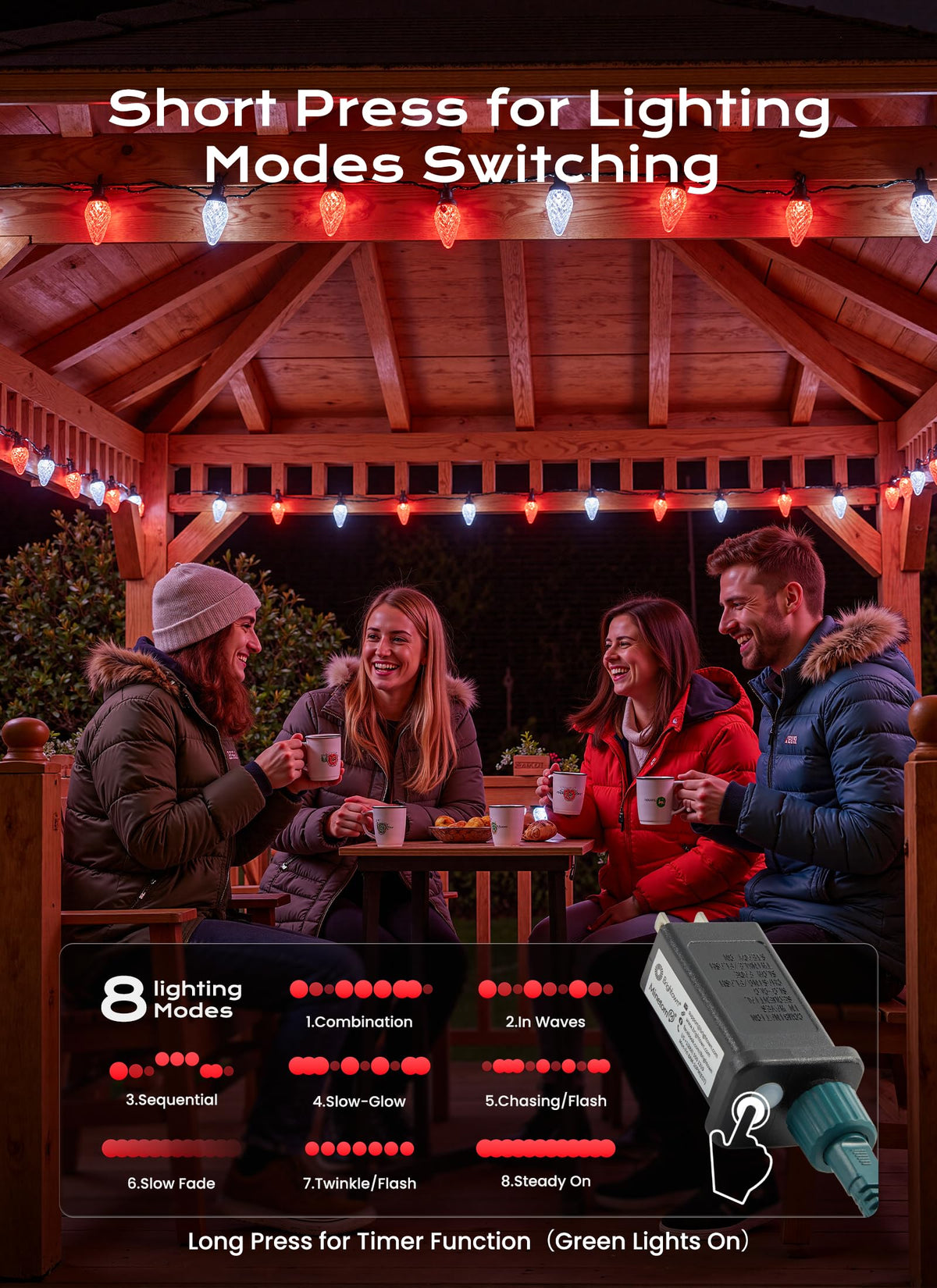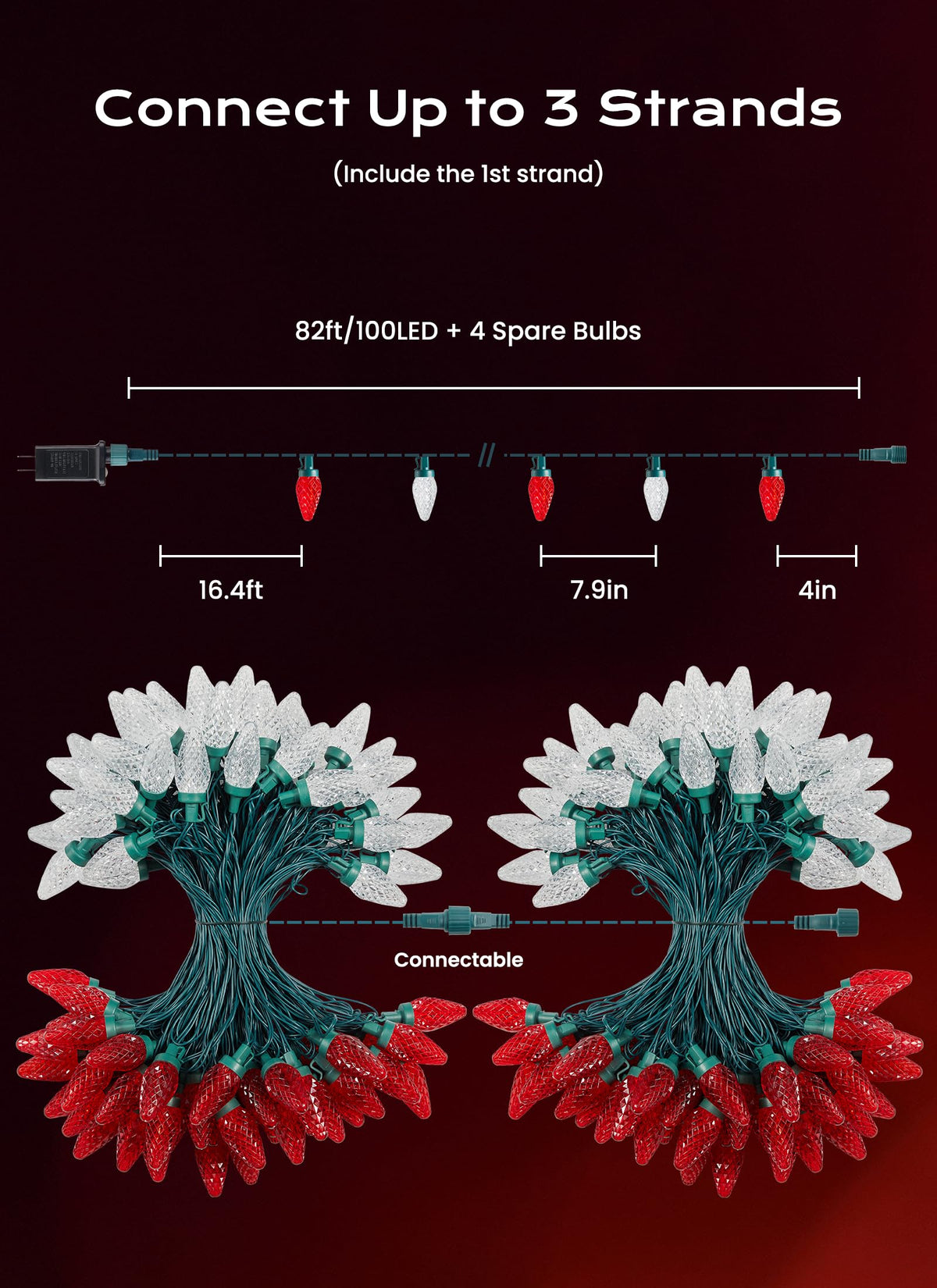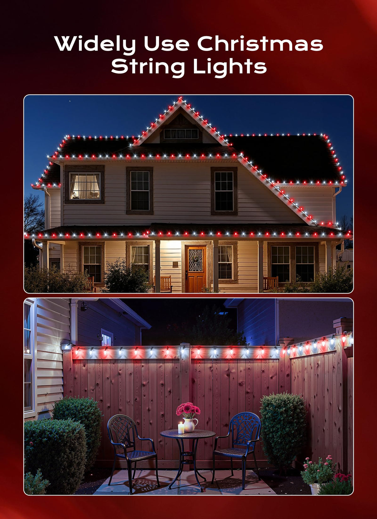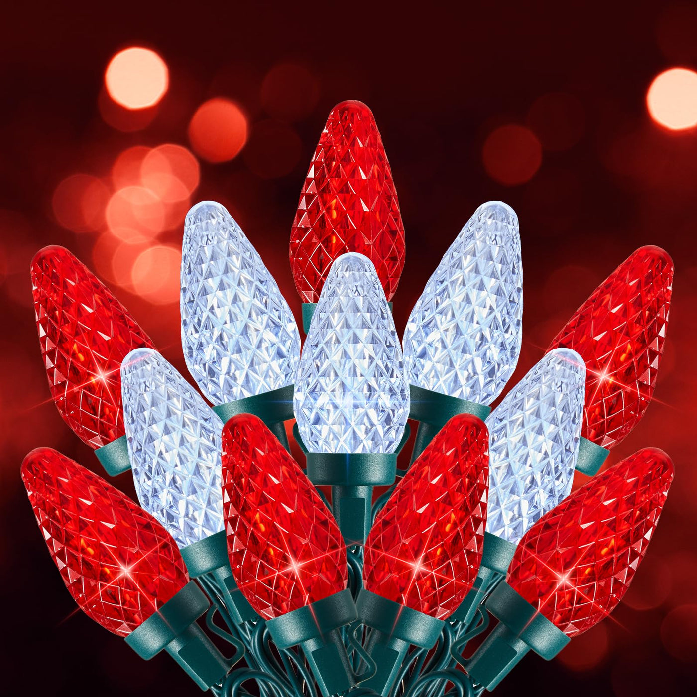 C9 Christmas Lights Outdoor 66 Ft 100 Led Connectable C9 String Lights With 8 Modes And Timer Xmas Tree Patio Roofline Garden Yard Holiday Party Indoor Outdoor Decoration Red And White