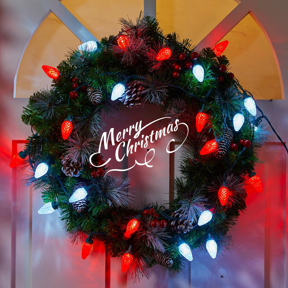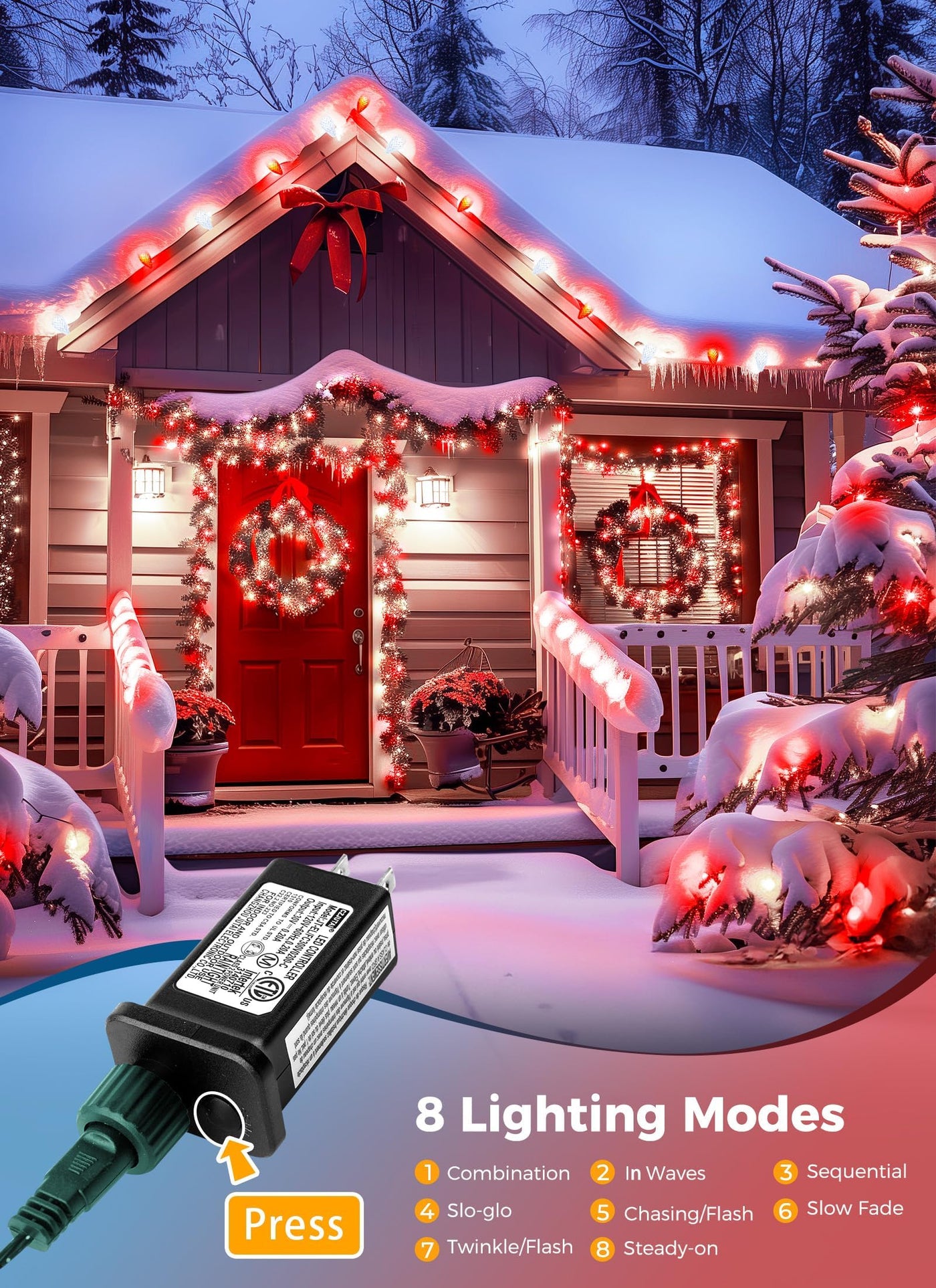 C9 Christmas Lights Outdoor Waterproof 114 Feet 150 Led C9 String Light With Timer & 8 Light Mode Connectable Christmas Tree Lights For House Outside Roofline Indoor Decoration Red & Pure White