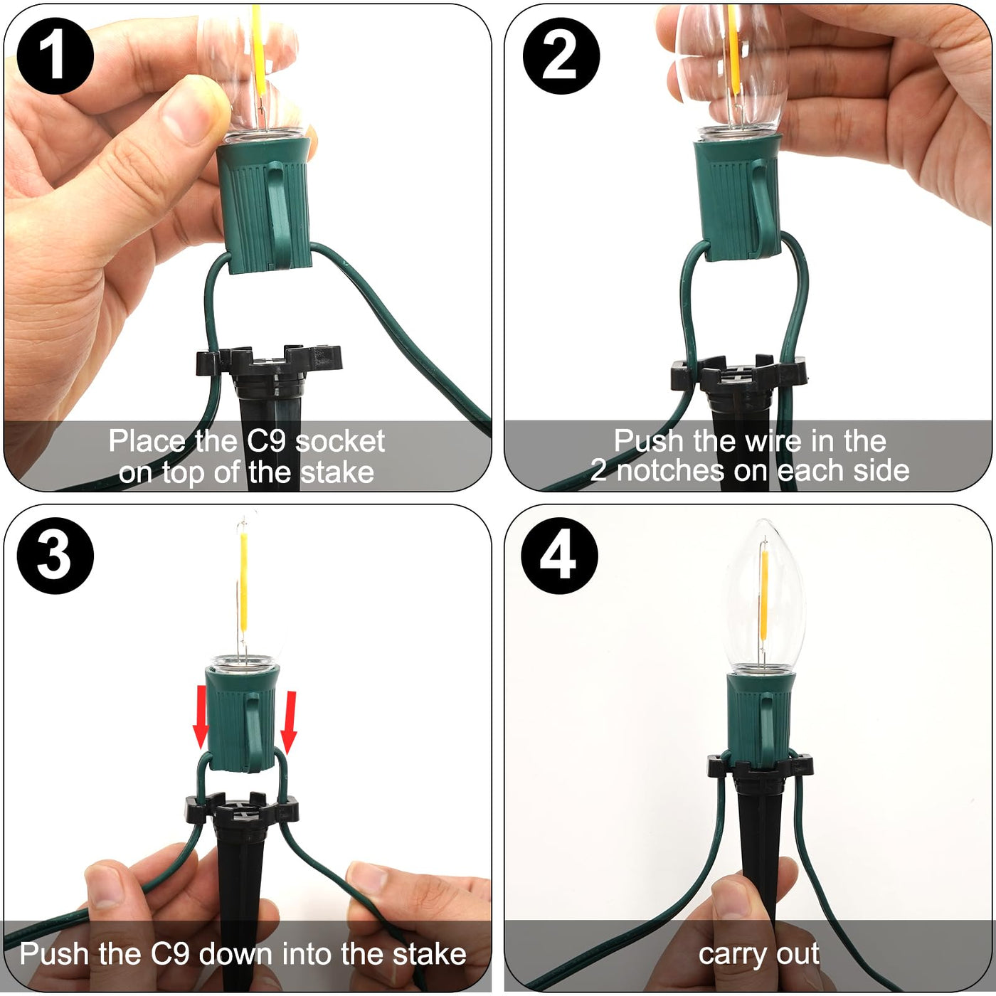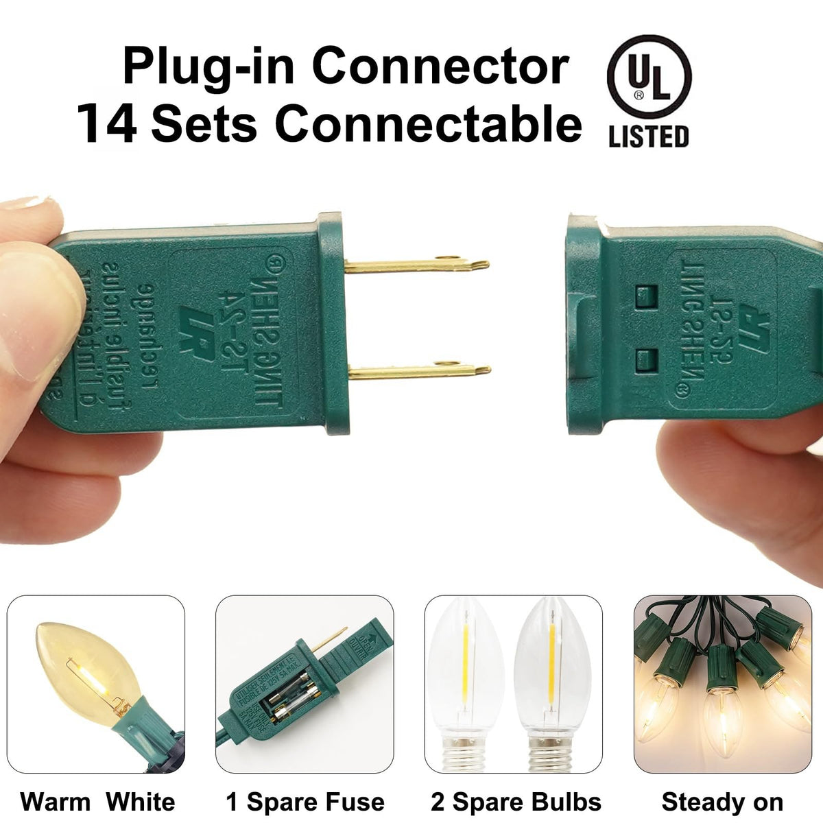 C9 Christmas Pathway Lights, 38Ft C9 Christmas Pathway String Lights With 25 Clear Led Light Bulbs And Stakes For Outdoor Walkway Driveway Backyard Christmas Decorations End-To-End Connection: 38Ft C9 Christmas Walkway Lights Allow You To Connect Up To 14 Sets Of Lights With The Same Wattage End To End. 18'' Lead With A Male Plug, 18'' Spacing Between Stake Light Bulbs, And A 6'' Tail With A Female Connector. Christmas Pathway Lights Can Create A Continuous Pathway Of Light, Turning Your Winter Garden Into A Festive Wonderland. Ip44 Waterproof: C9 Christmas Pathway Stake Lights Are Ip44 Waterproof, Ensuring They Withstand All Weather Conditions From Snow To Rain. Ul Listed For Safety, Christmas Lights Provide Reliable Performance Season After Season, Making Them The Perfect Choice For Outdoor Patio Decorations That Last. Energy Saving Led Lights: Christmas Pathway Lights Have E17/C9 Candelabra Socket Base, 0.6W C9 Led Light Bulbs. Christmas Lights Are Energy Saving And Long Lasting. Even If One Light Goes Out, The Rest Will Remain Illuminated. The Fuses Are Rated At 5A, 125V. If The Entire String Of Lights Does Not Work, You Have The Option To Replace The Fuse And Give It Another Try.
