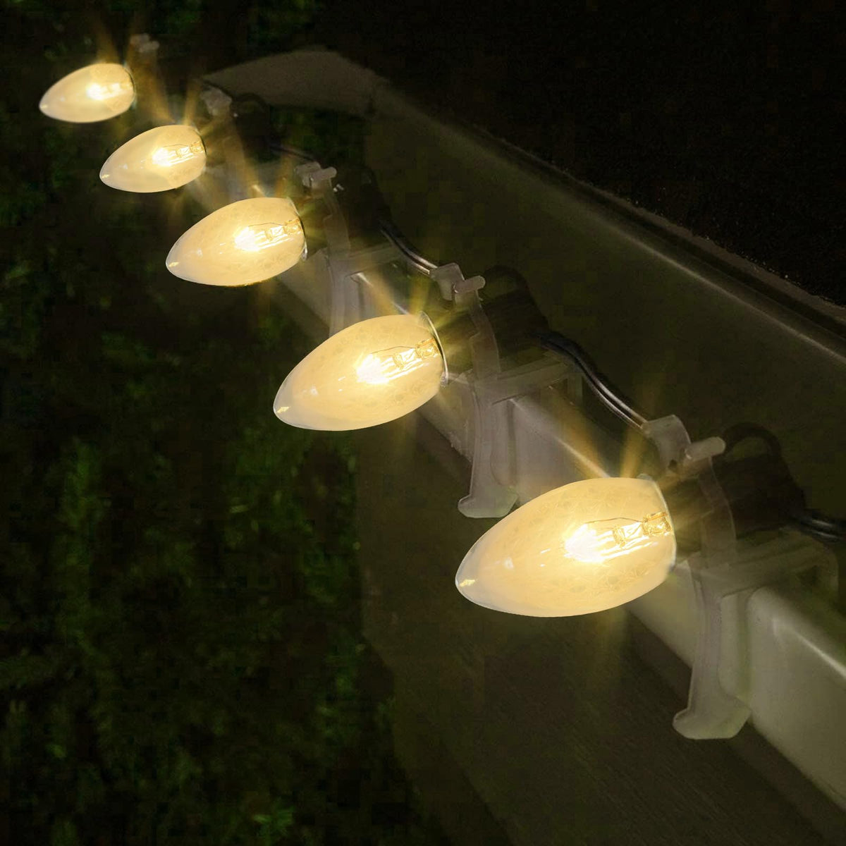 Q: Are these bulbs suitable for outdoor use?A: Yes, these C9 clear replacement bulbs are IP44 waterproof and UL Certified, making them safe and suitable for outdoor use, including Christmas string lights.