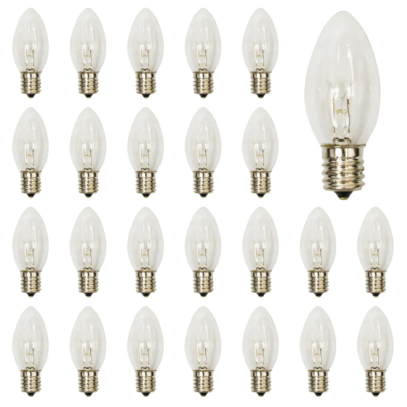 C9 Clear Replacement Bulbs, 25 Pack C9 Christmas Incandescent Light Bulbs Fits In C9/E17 Intermediate Base, 7W Night Light Bulbs For Outdoor Christmas String Light