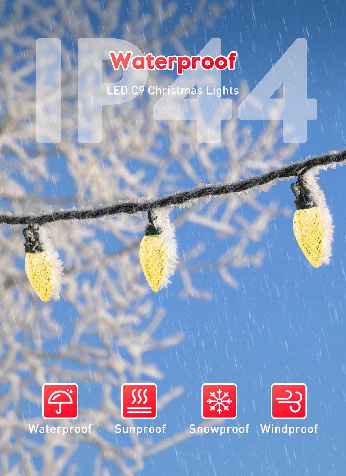 Q: Are the C9 LED lights suitable for outdoor use?A: Absolutely! The C9 LED Christmas lights are IP44 waterproof rated, making them safe for both indoor and outdoor use. They are designed to withstand various weather conditions.