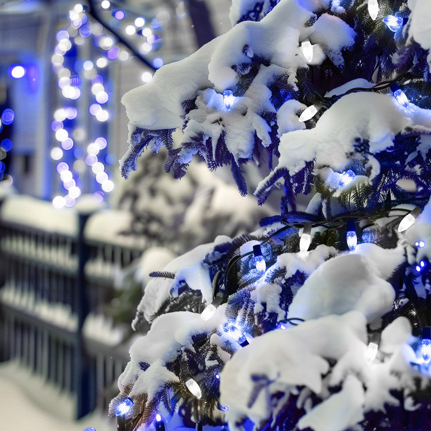 Q: What is the lifespan of the LED bulbs in these lights?A: The LED bulbs in the C9 Christmas lights have a lifespan of approximately 6,000 hours, providing long-lasting illumination for your holiday decorations.