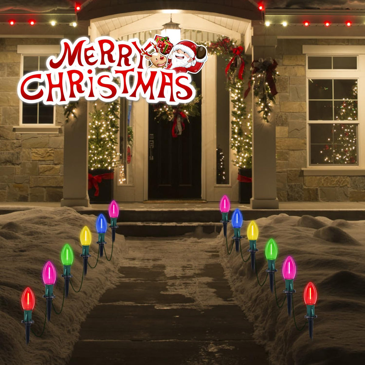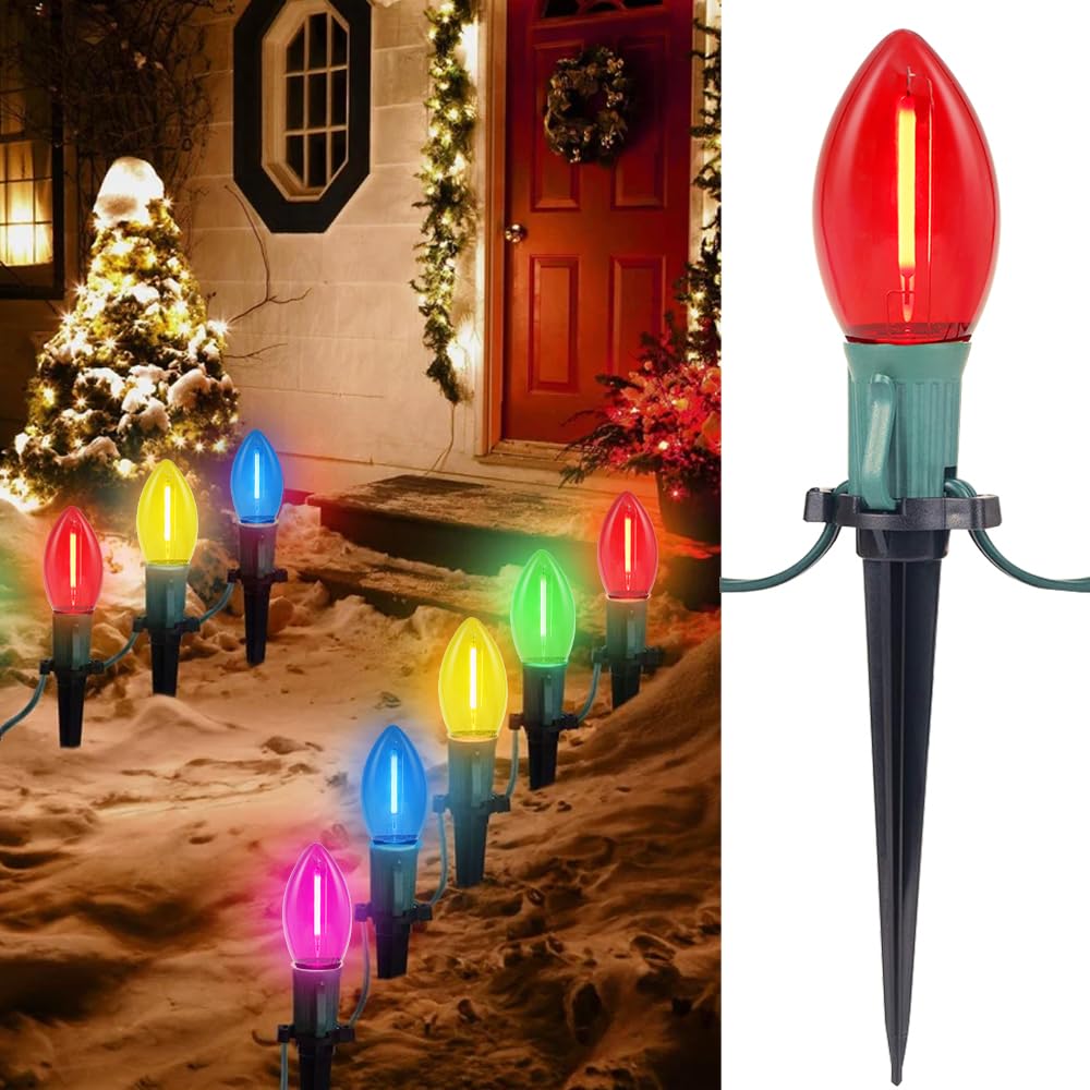C9 Led Christmas Pathway Lights, 38Ft Multi-Color Christmas Pathway String Lights With 25 Multi-Color Led Light Bulbs And Stakes