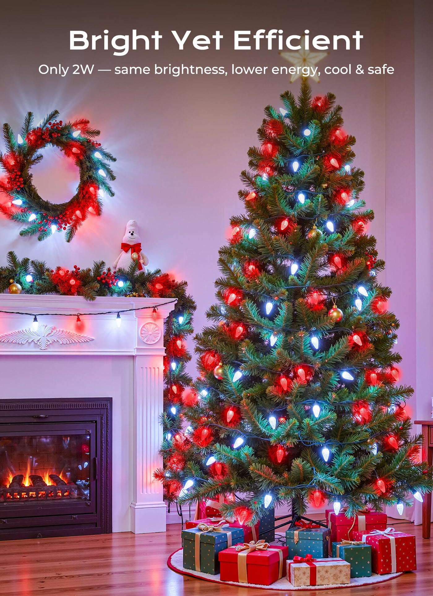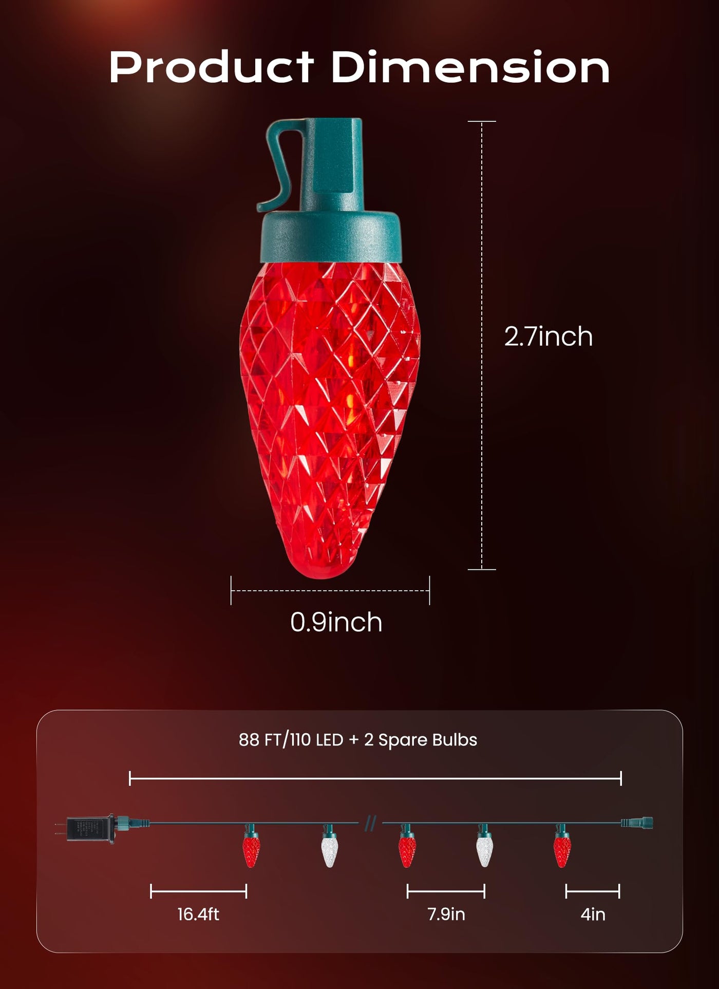 C9 Outdoor Christmas Lights 72 Ft 110 Led C9 String Lights 8 Modes & Timer Extendable Waterproof For Christmas Tree Indoor Outdoor Roofline Patio Outside Garden Backyard Xmas Decor Red White 2 Pack