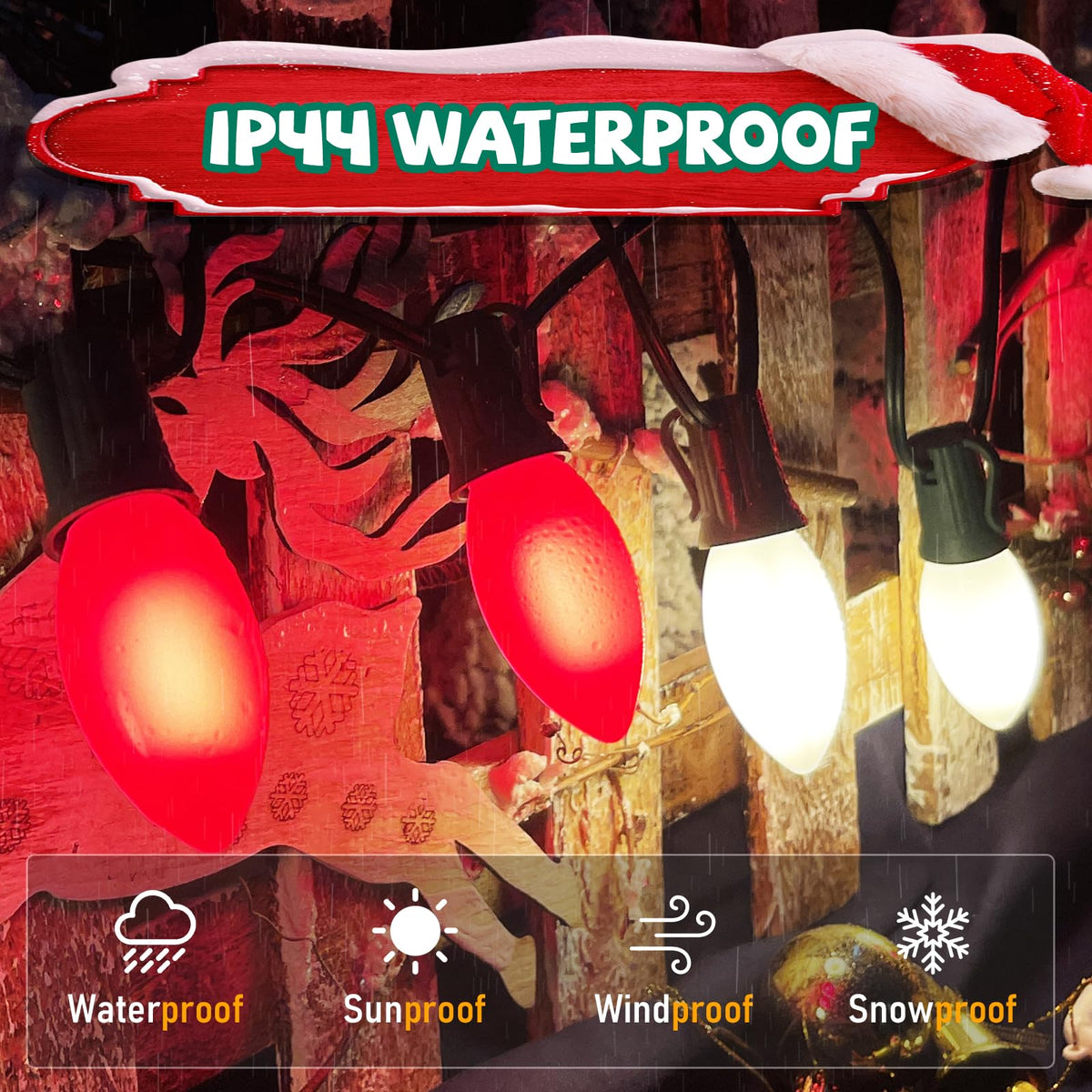 Q: Can these Christmas lights be used outdoors during inclement weather?A: Yes, these Christmas lights are UL Certified for both indoor and outdoor use, built with weatherproof technology to withstand extreme temperatures, rain, and wind, making them suitable for outdoor holiday decorations.